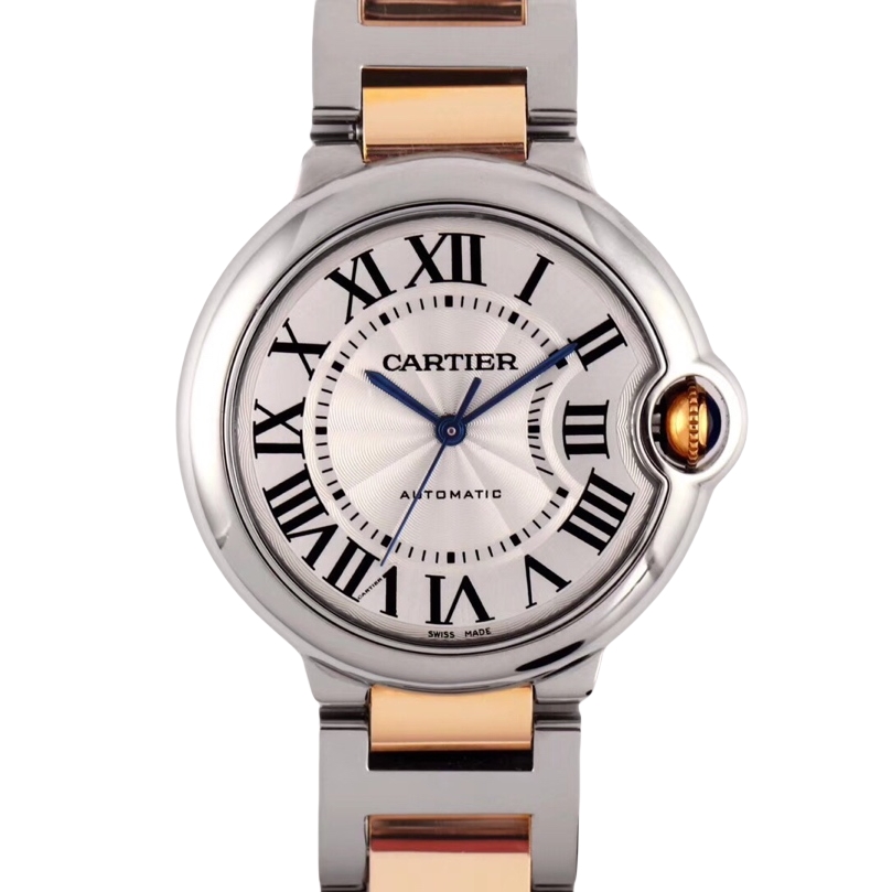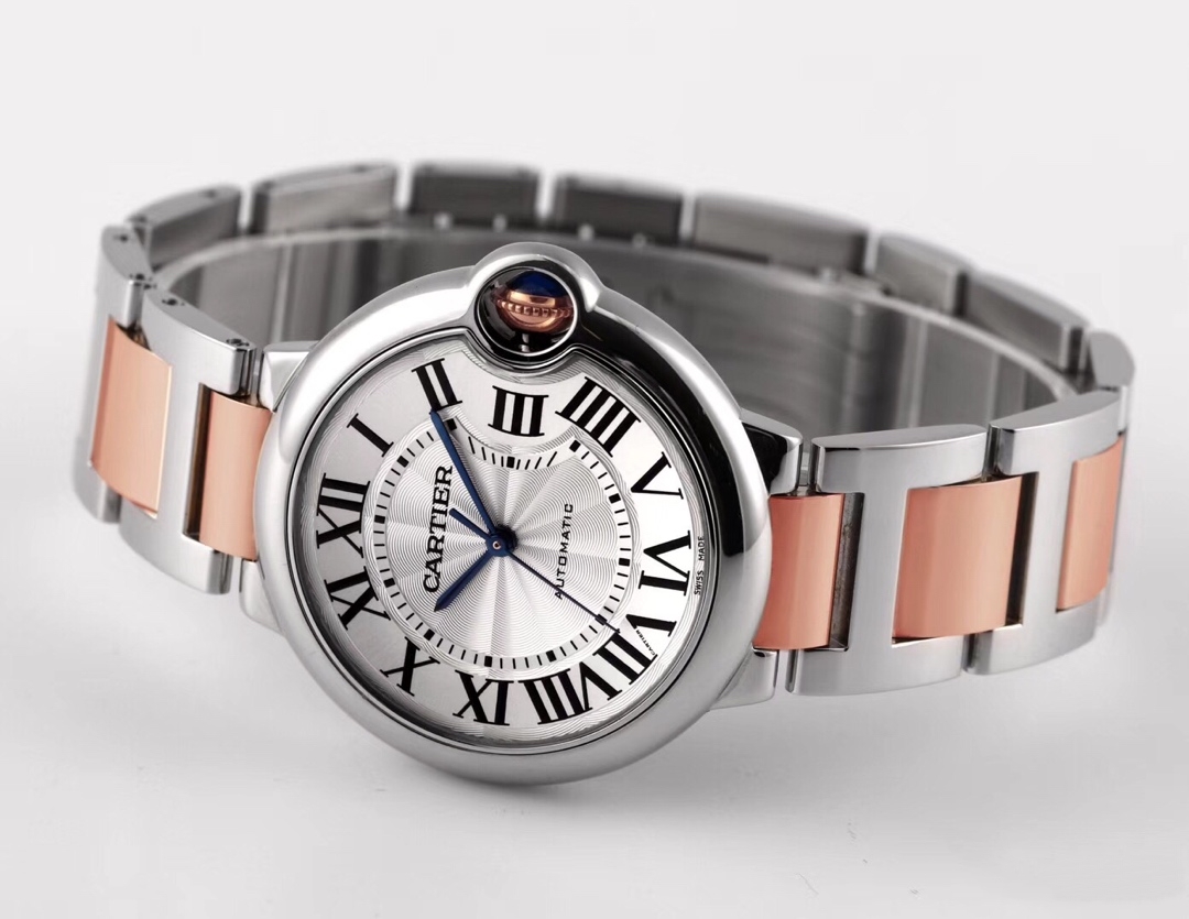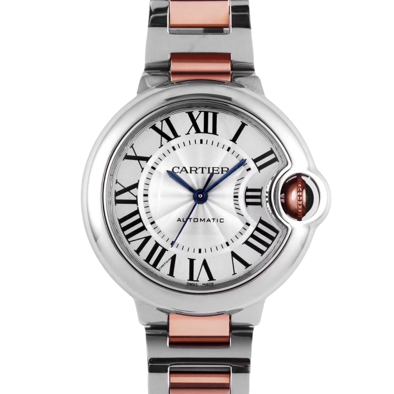 Cartier Ballon Bleu 36mm 33mm White Dial Rose Gold Steel Bezel Strap W2BB0033 Ladies