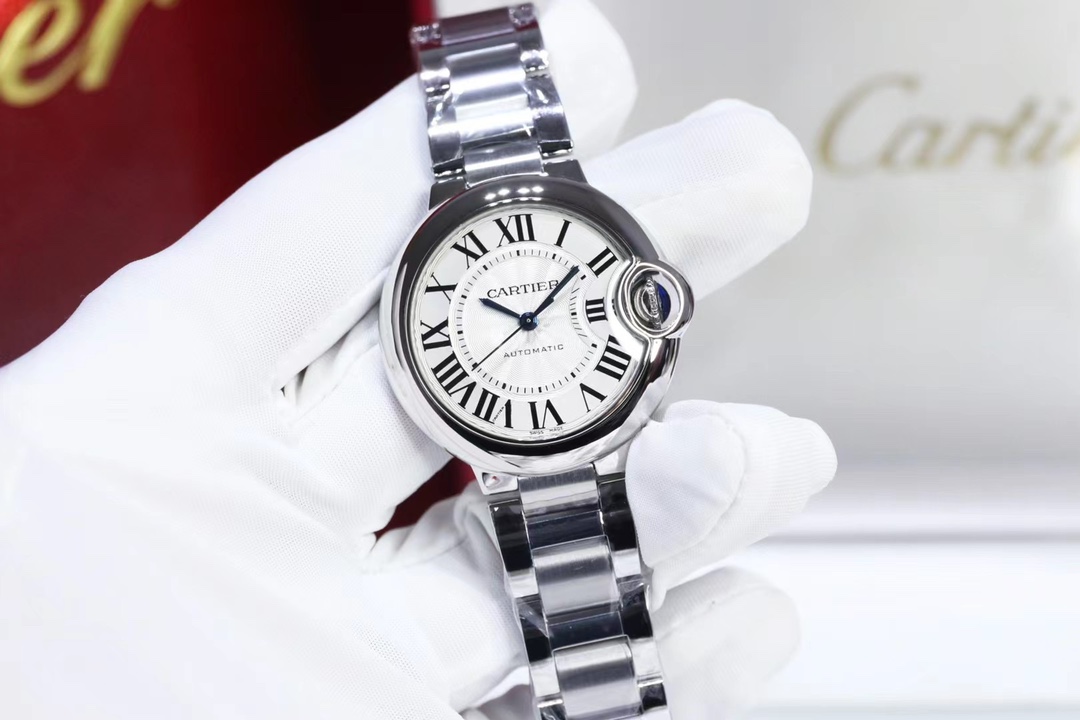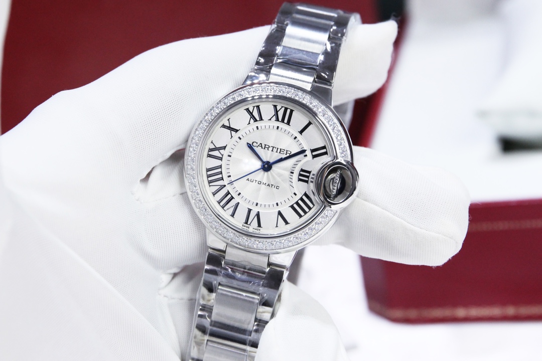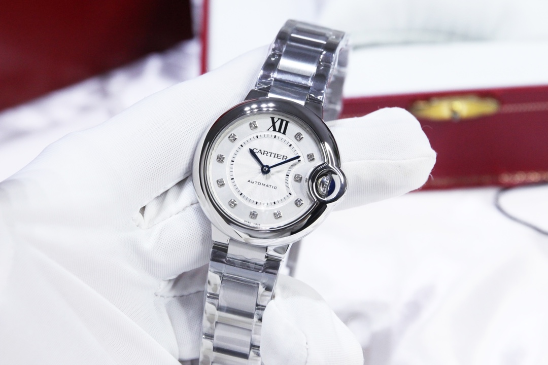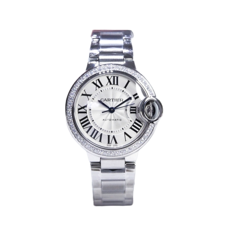 Cartier Ballon Bleu 36mm 33mm White Dial Diamond Bezel Steel Strap W4BB0024 Ladies
