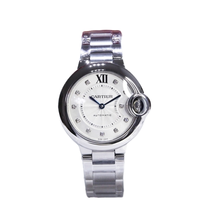 Cartier Ballon Bleu 36mm 33mm White Diamond Dial Steel Bezel Strap W4BB0021 Ladies