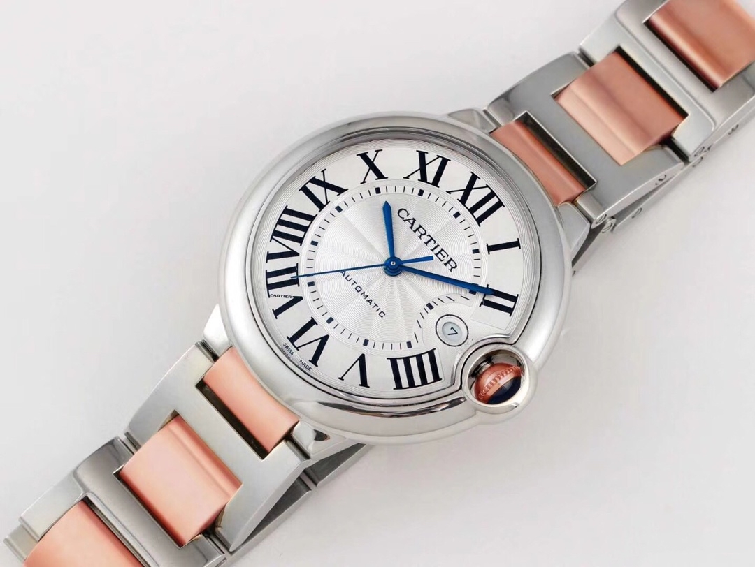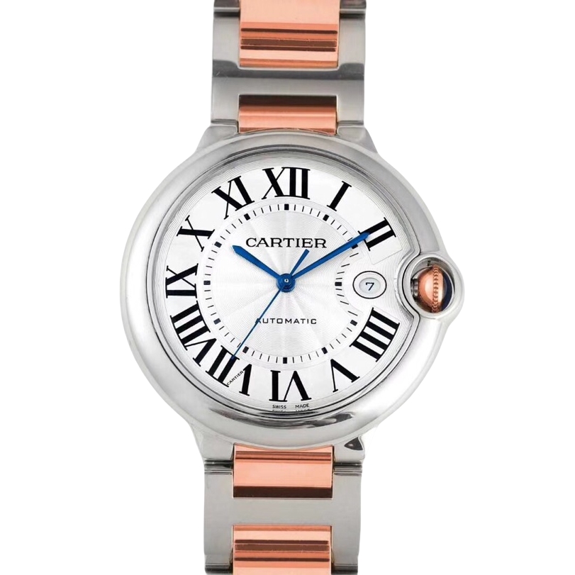 Cartier Ballon Bleu 42mm White Dial Rose Gold Steel Bezel Strap W2BB0034
