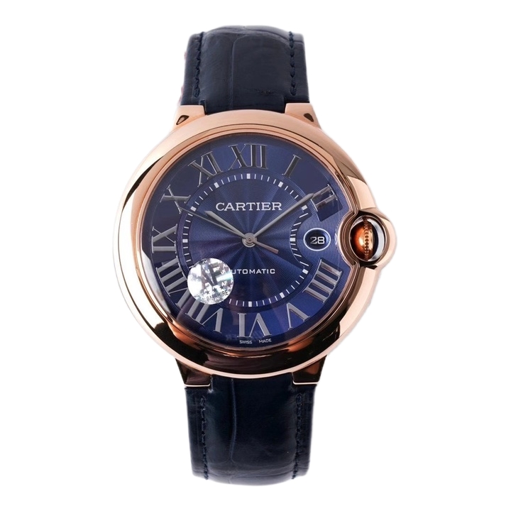 Cartier Ballon Bleu 42mm Blue Dial Rose Gold Bezel Blue Leather Strap WGBB0036