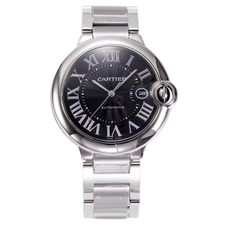 Cartier Ballon Bleu 42mm Black Dial Steel Bezel Steel Strap W6920042