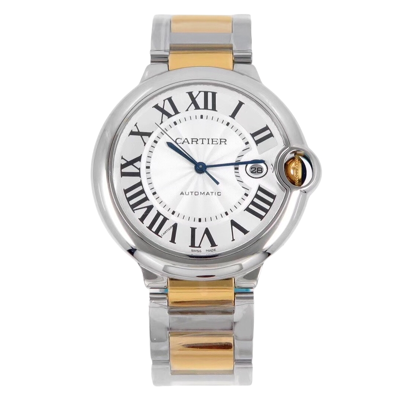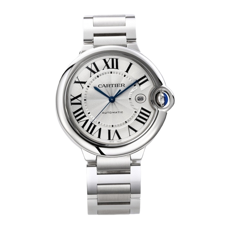 Cartier Ballon Bleu 42mm Silver Dial Steel Bezel Steel Strap W69012Z4