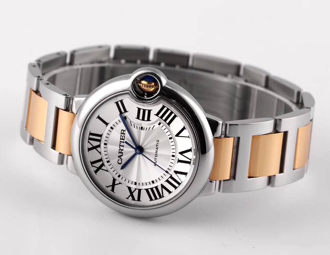 Cartier Ballon Bleu 36mm 33mm White Dial Yellow Gold Steel Bezel Strap W2BB0037 Ladies