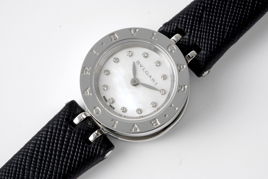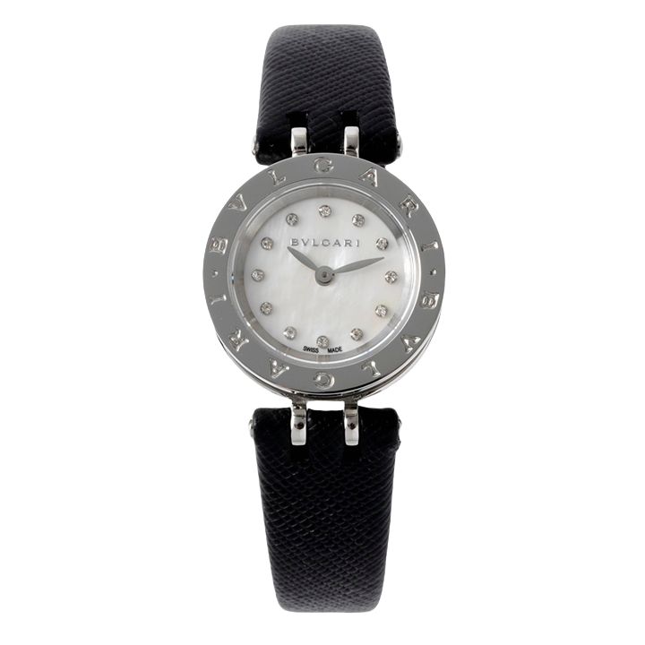 BVLGARI B.zero1 23mm White Diamond Dial Steel Bezel Black Leather Strap 1011X6 BZ23WSGCL/12 Ladies Woman
