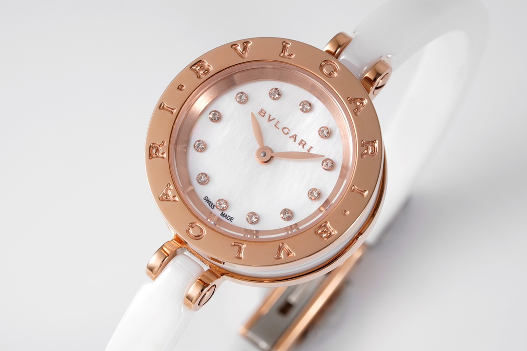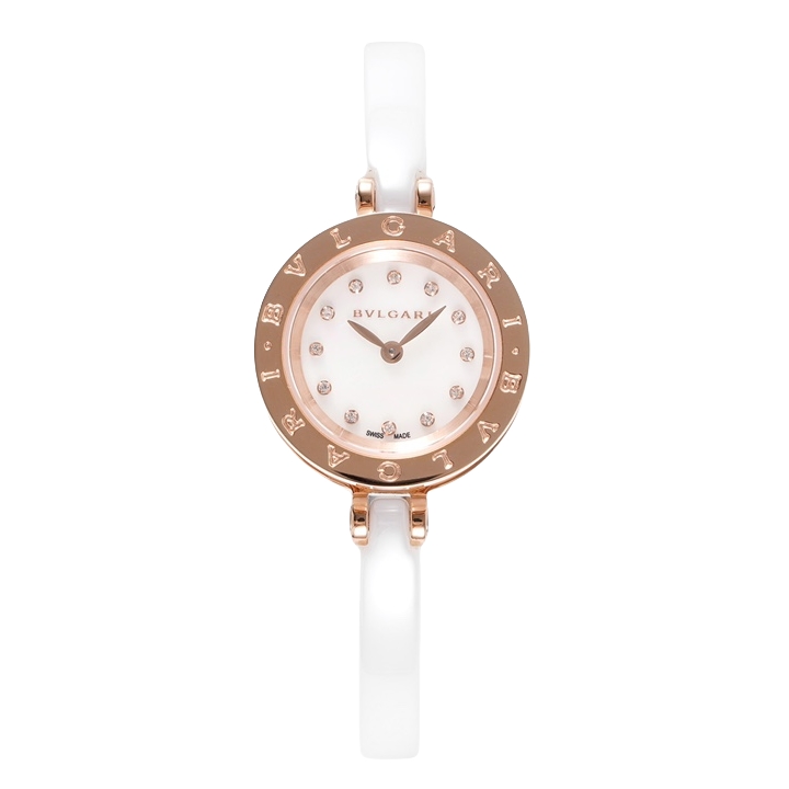 BVLGARI B.zero1 23mm White Diamond Dial Rose Gold Bezel White Ceramics Strap 102088 BZ23WSGCC/12.M Ladies Woman