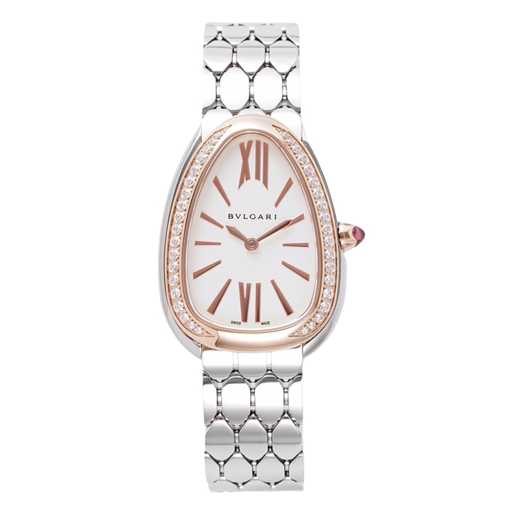 BVLGARI Serpenti Seduttori 33mm White Dial Rose Gold & Steel Bezel Steel Strap 103144 Ladies Woman