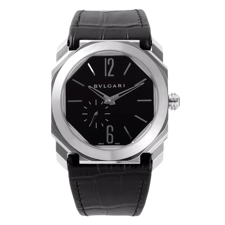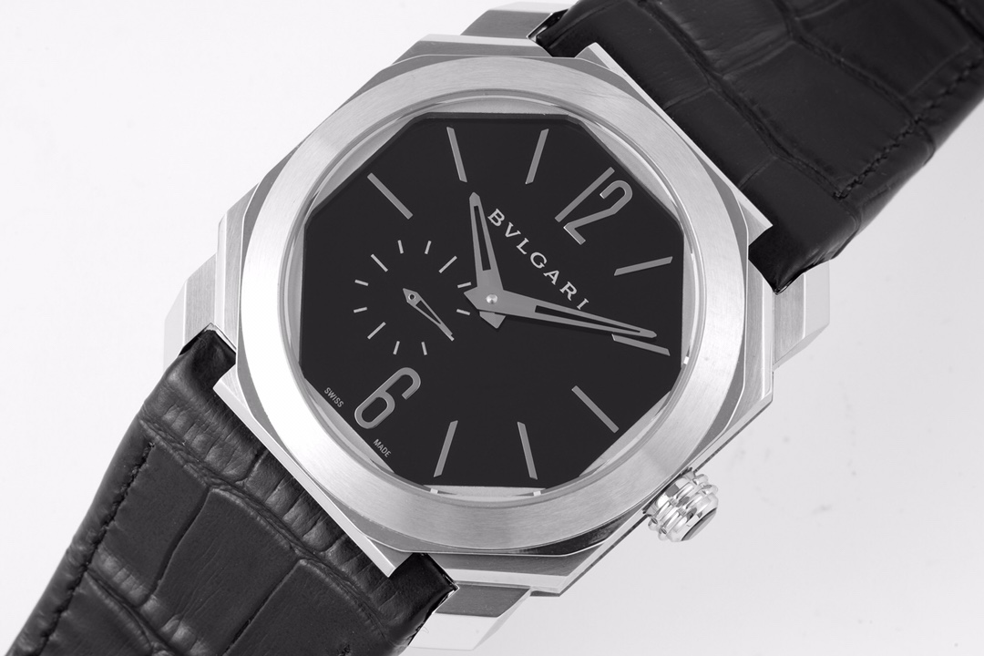BVLGARI Octo Finissimo 40mm Black Dial Steel Bezel Black Leather Strap 102028 BGO40BPLXT