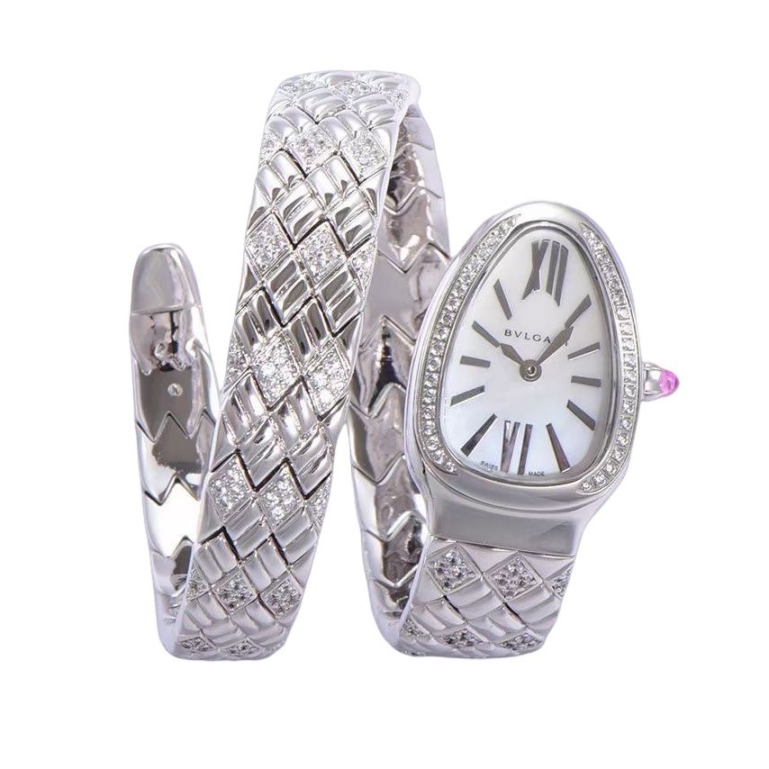 BVLGARI Serpenti Seduttori 34mm Full Diamond Dial Platinum Bezel Strap 103990 Ladies Woman