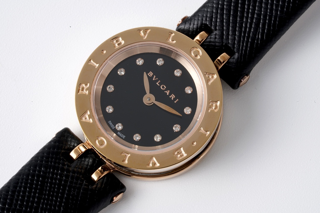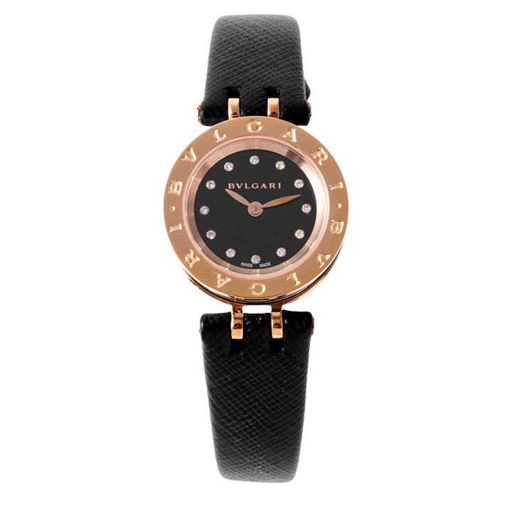 BVLGARI B.zero1 23mm Black Diamond Dial Rose Gold Bezel Black Leather Strap 10217B BZ23WSGCX/12 Ladies Woman