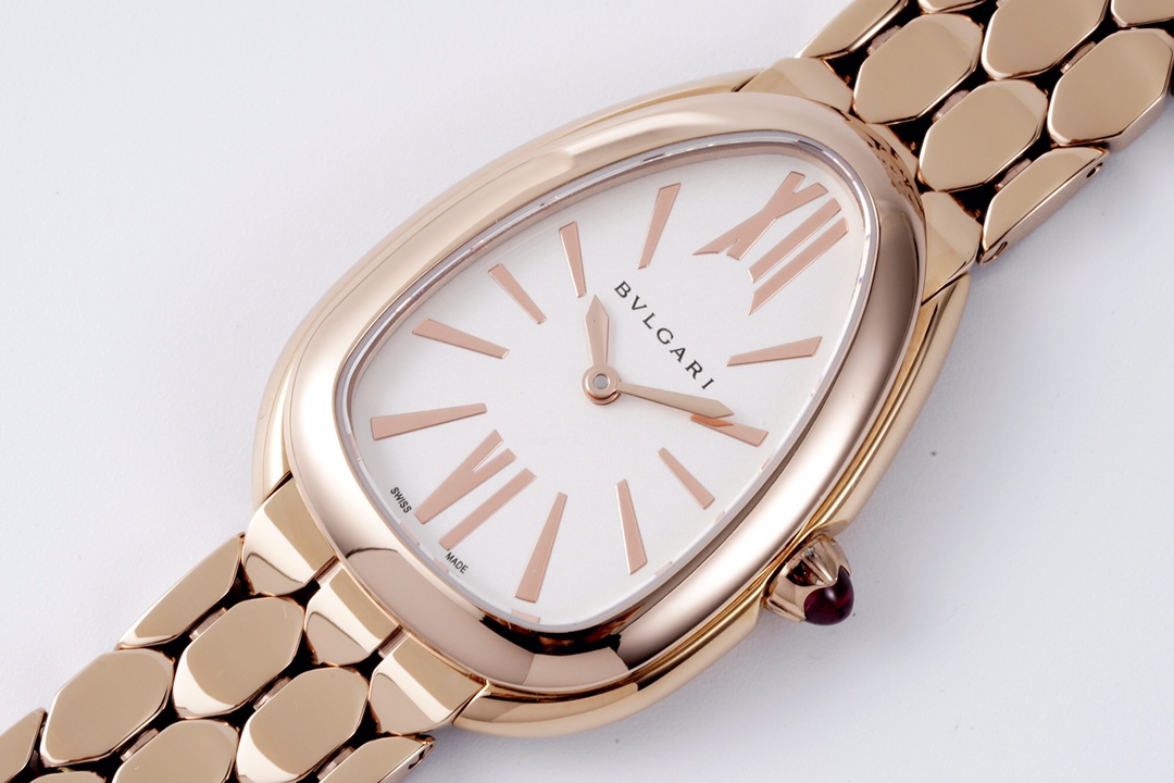 BVLGARI Serpenti Spiga 35mm White Pearl Dial Rose Gold Diamond Bezel Rose Gold Diamond Strap 103656 Ladies Woman