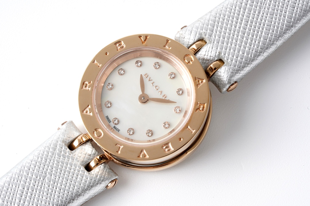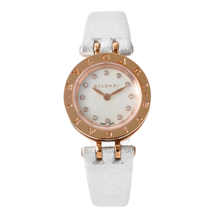 BVLGARI B.zero1 23mm White Diamond Dial Rose Gold Bezel White Leather Strap 102176 BZ23WSGCL/12 Ladies Woman