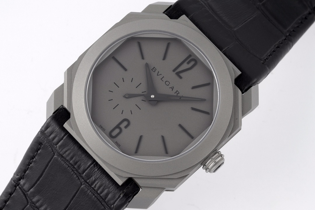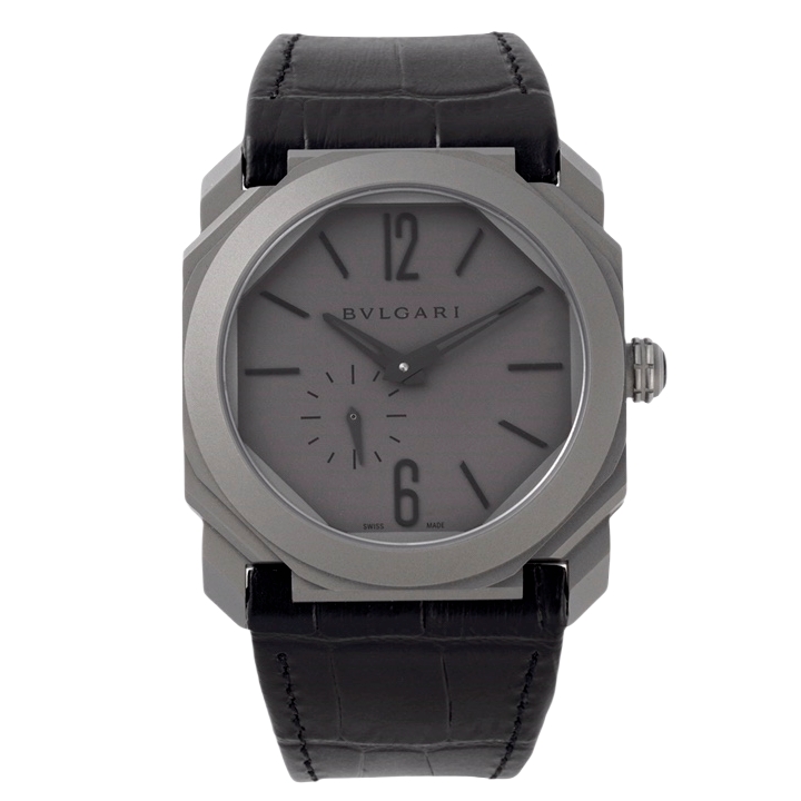 BVLGARI Octo Finissimo 40mm Grey Dial Titanium Bezel Black Leather Strap 102711 BGO40C14TLXTAUTO