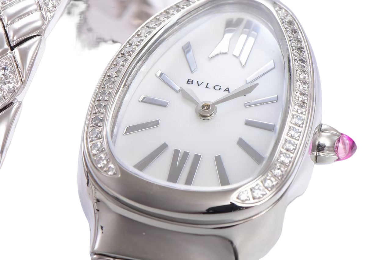 BVLGARI Serpenti Seduttori 33mm White Dial Steel Diamond Bezel Steel Strap 103361 Ladies Woman