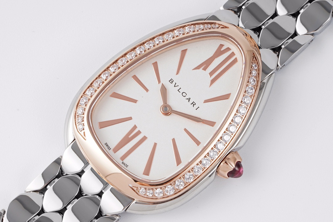 BVLGARI Serpenti Seduttori 33mm White Dial Rose Gold Diamond Bezel Steel Strap 103143 Ladies Woman