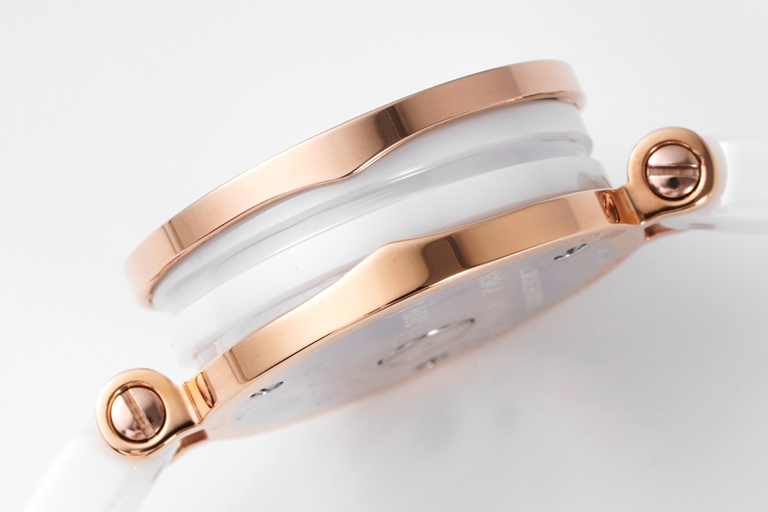 BVLGARI B.zero1 23mm White Diamond Dial Rose Gold Bezel White Ceramics Strap 102088 BZ23WSGCC/12.M Ladies Woman