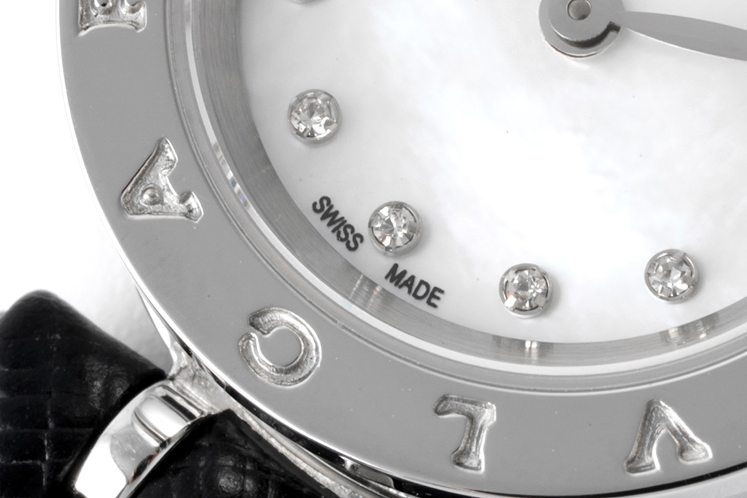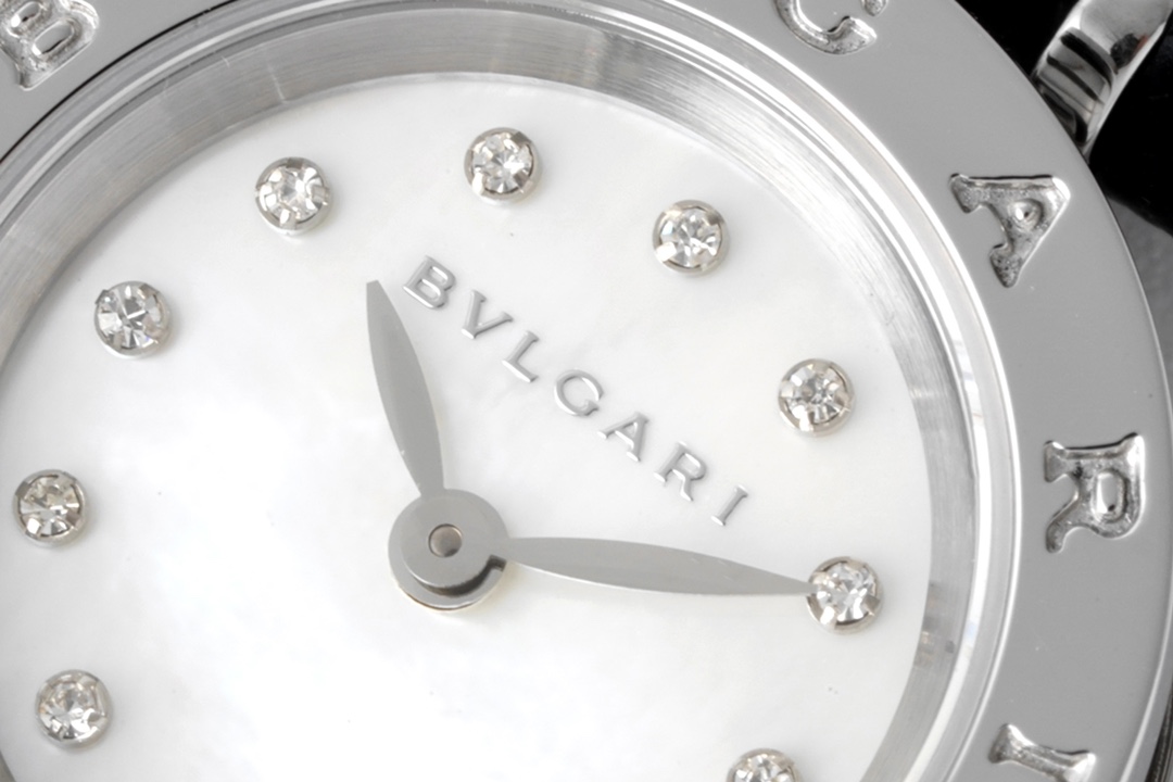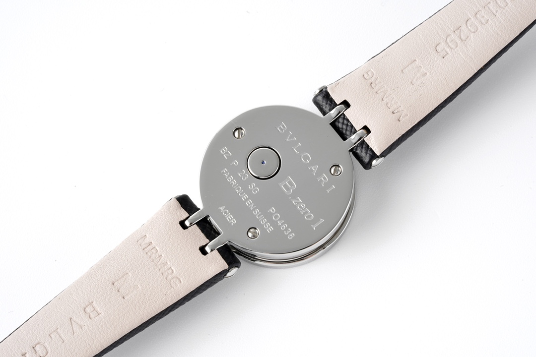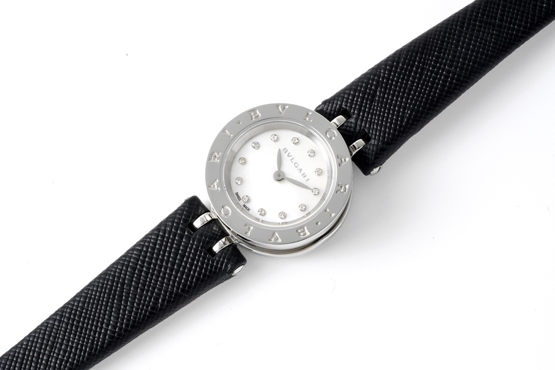 BVLGARI B.zero1 23mm White Diamond Dial Steel Bezel Black Leather Strap 1011X6 BZ23WSGCL/12 Ladies Woman
