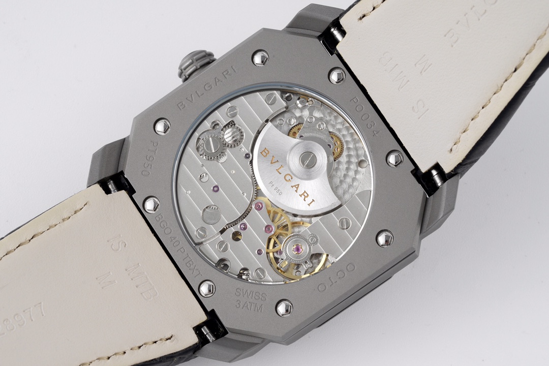 BVLGARI Octo Finissimo 40mm Grey Dial Titanium Bezel Black Leather Strap 102711 BGO40C14TLXTAUTO