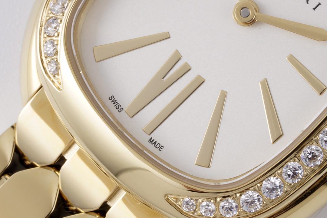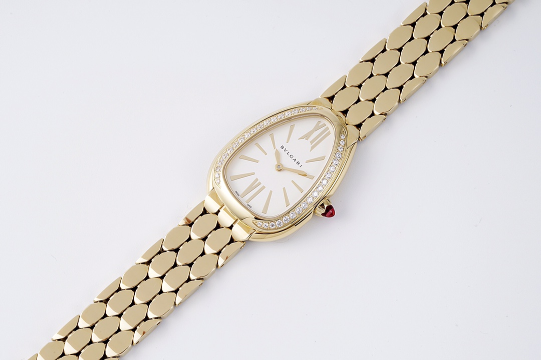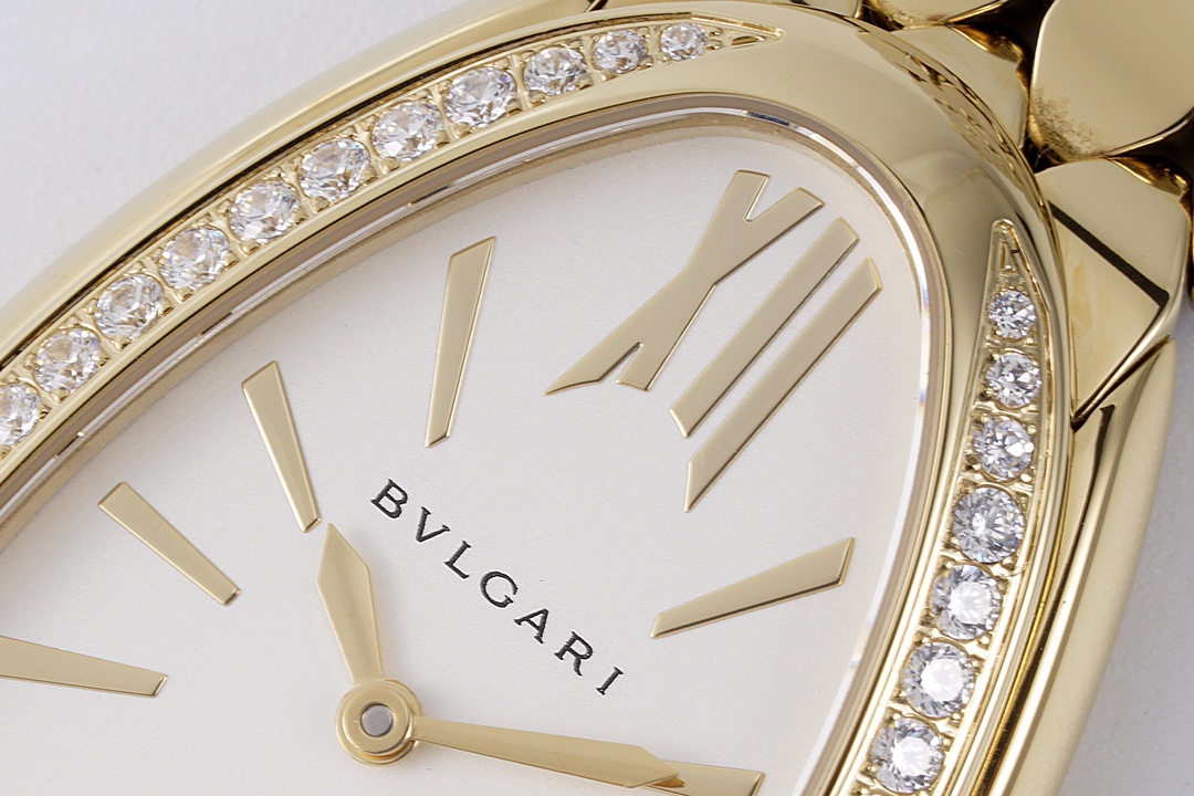 | BVLGARI Serpenti Seduttori 33mm White Dial Yellow Gold Diamond Bezel Strap 103147 Ladies Woman | |