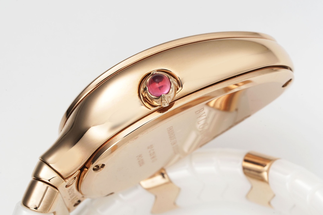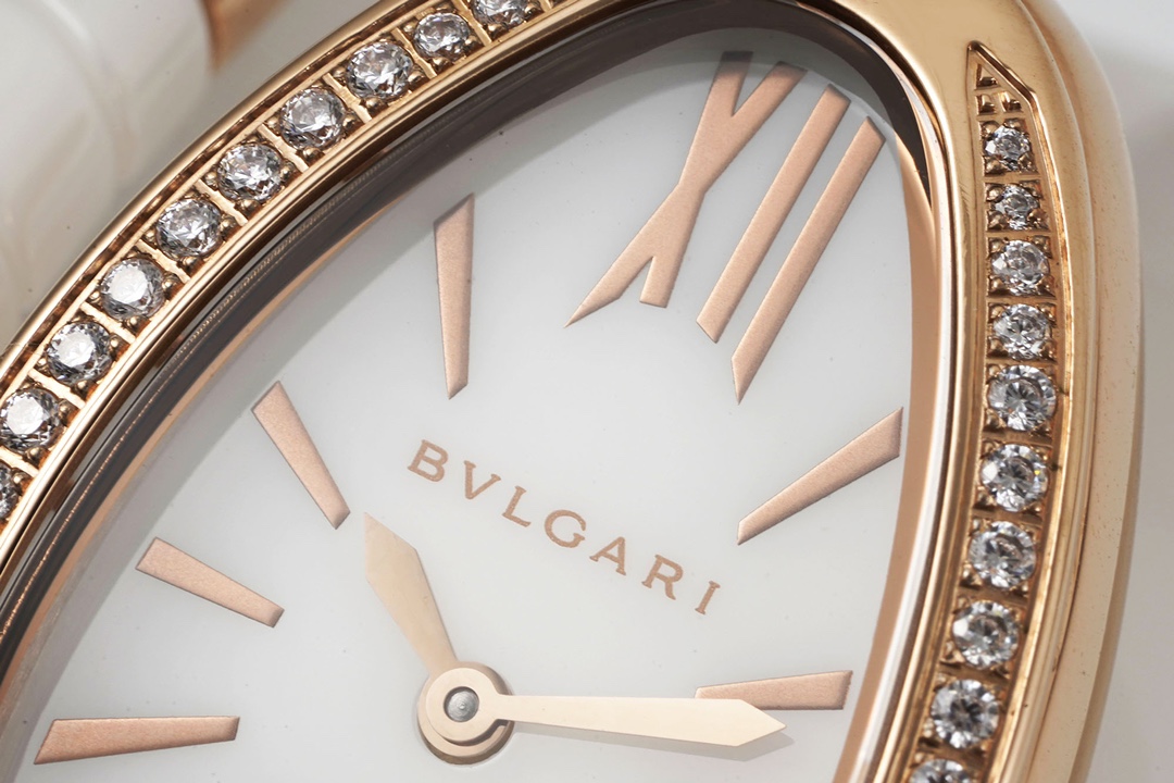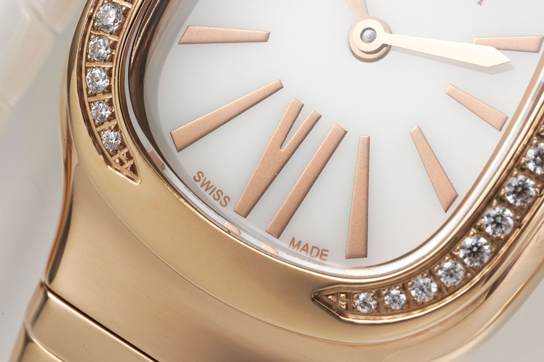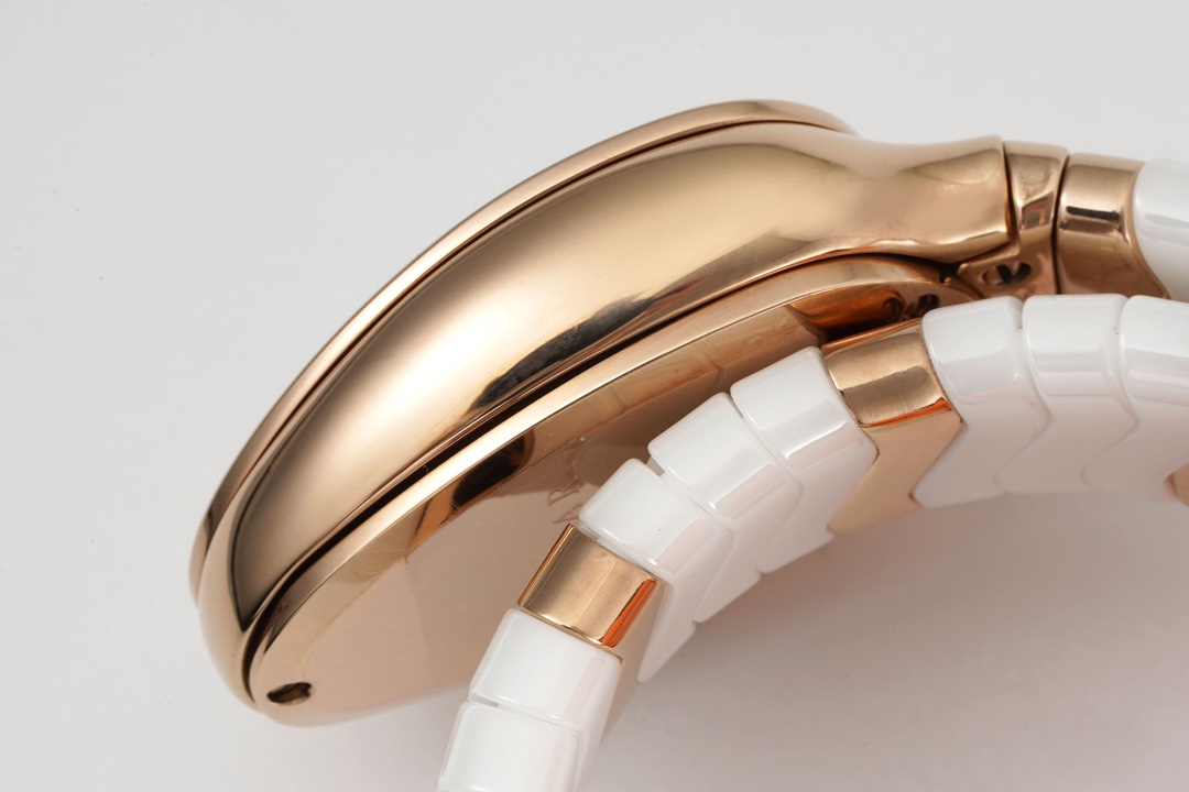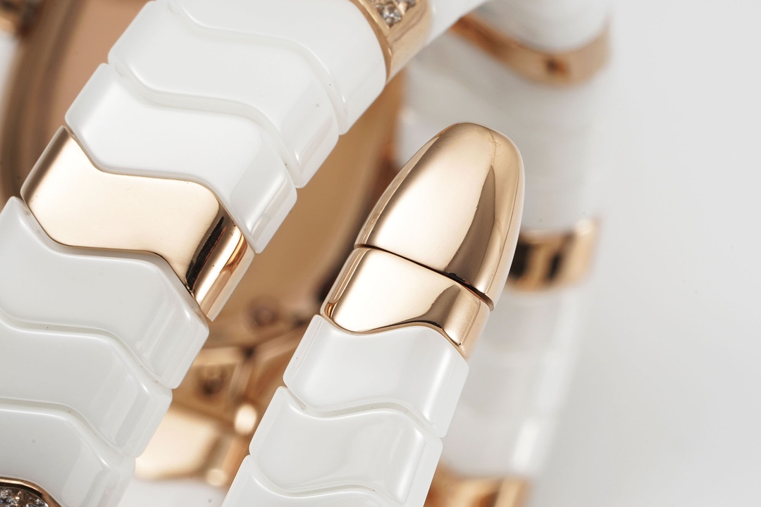 BVLGARI Serpenti Spiga 35mm White Dial Rose Gold Diamond Bezel White Ceramics Rose Gold Diamond Strap 102202 SPP35WGDWCGD1.1T Ladies Woman