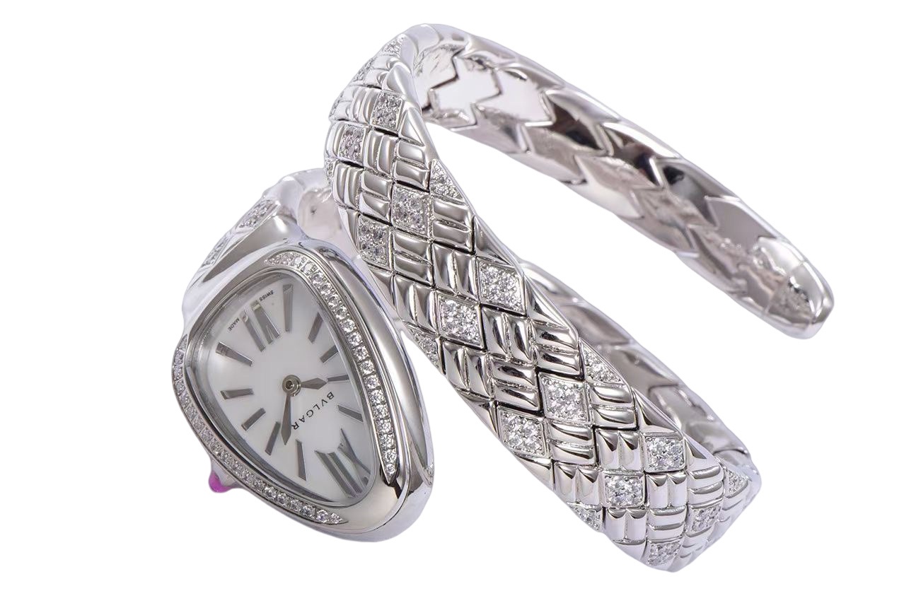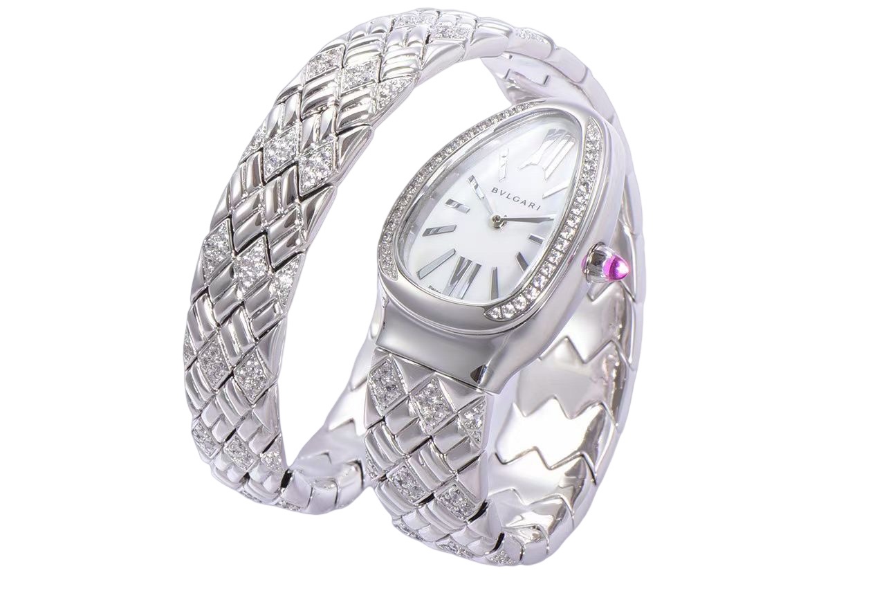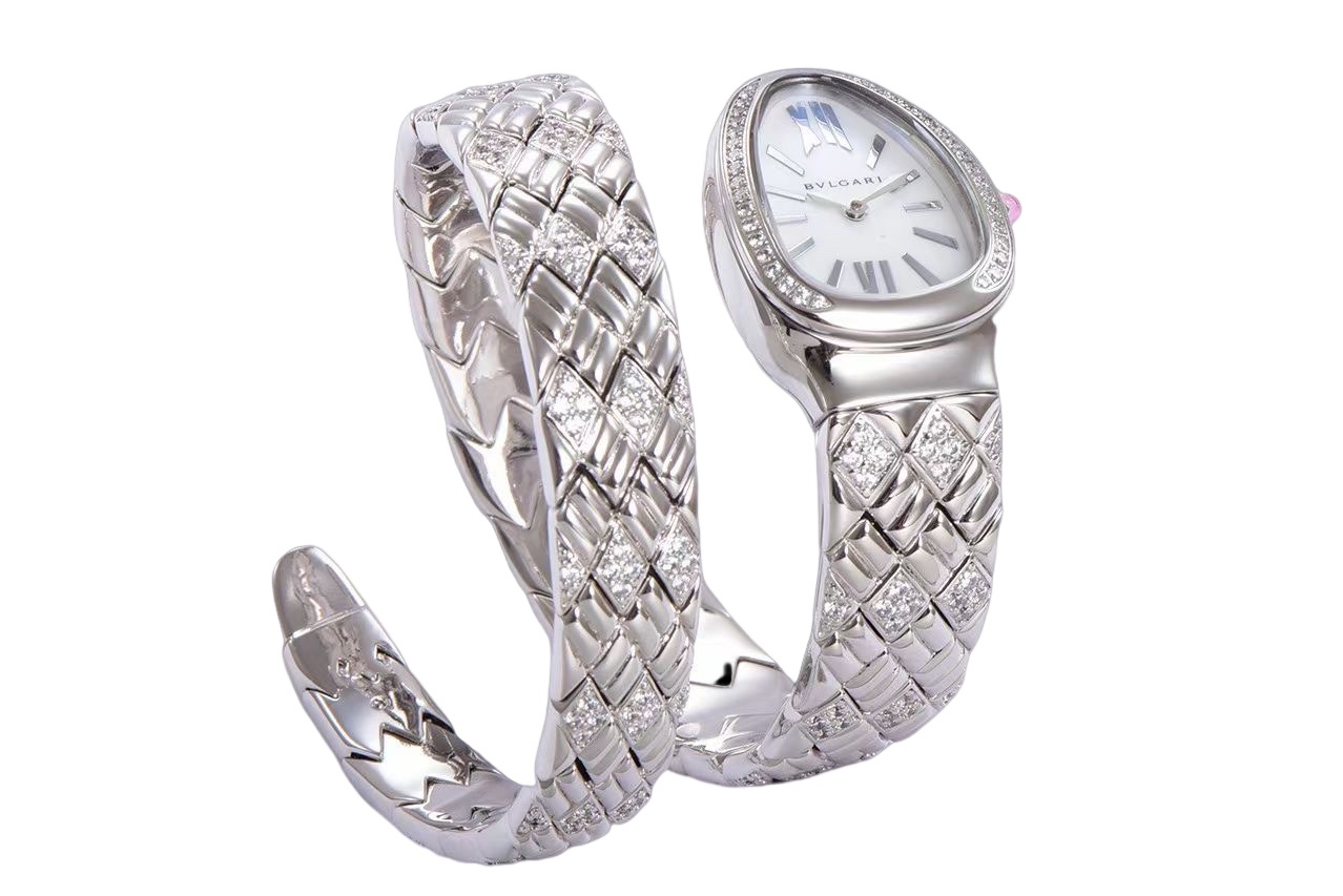 | BVLGARI Serpenti Spiga 35mm White Dial Steel Diamond Bezel Steel Diamond Strap 103749 Ladies Woman | |
