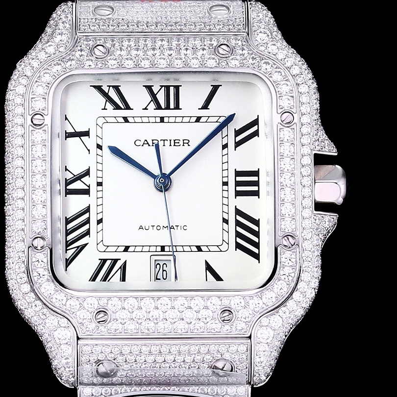 Cartier Santos Full Diamond 40mm Dial 9015 movement White Platinum
