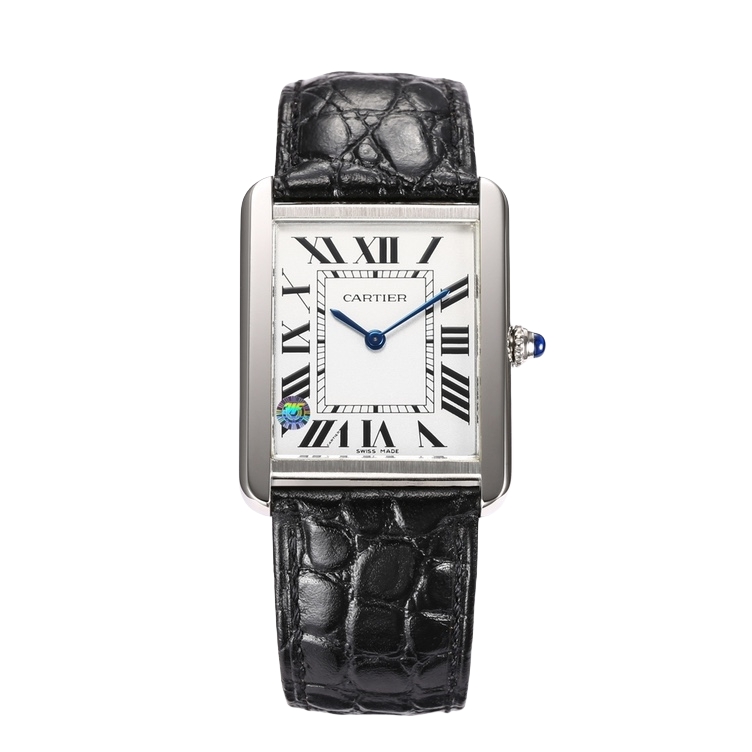 Cartier Tank 33.7mm x 25.5mm White Dial Steel Bezel Black Leather Strap WSTA0042 Woman Ladies