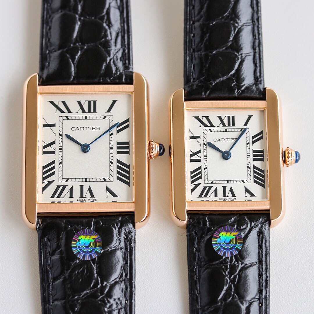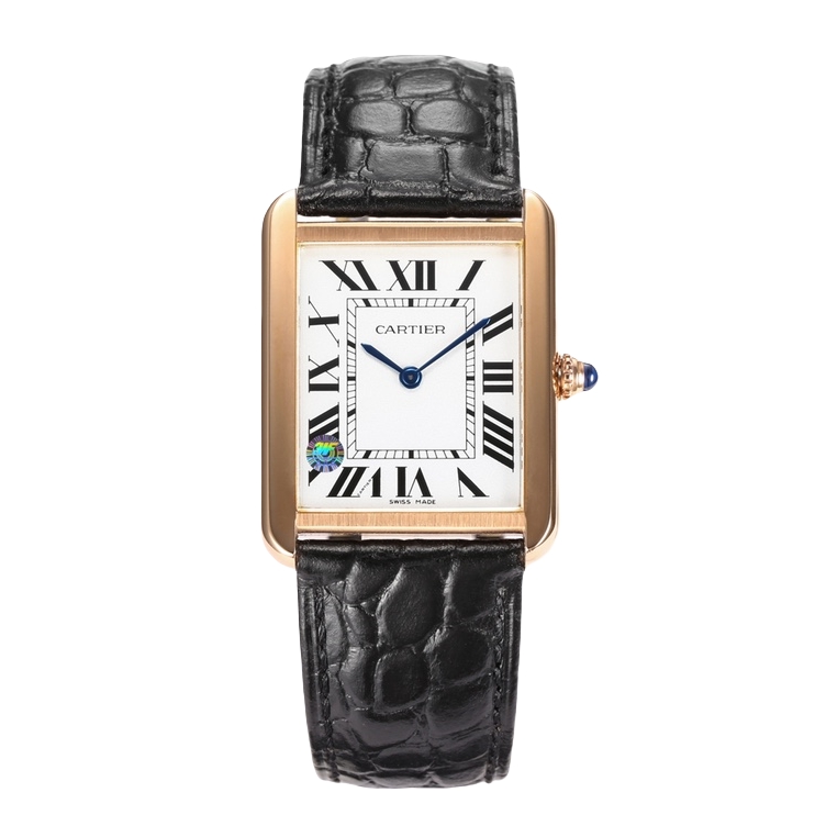 Cartier Tank 33.7mm x 25.5mm White Dial Rose Gold Bezel Black Leather Strap WSTA0X42 Woman Ladies