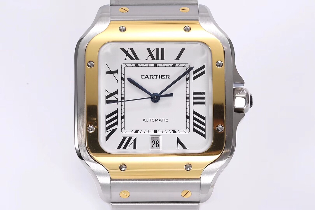 Cartier Santos 39.8mm White Dial Yellow Gold & Steel Bezel Strap Roman Numerals W2SA0009