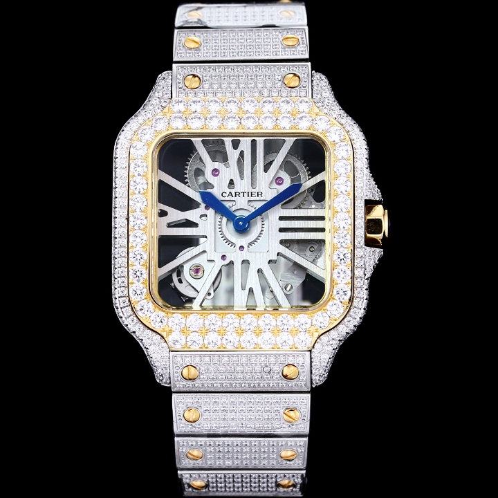 Cartier Santos Full Diamond 40mm 9015 movement White dial Gold