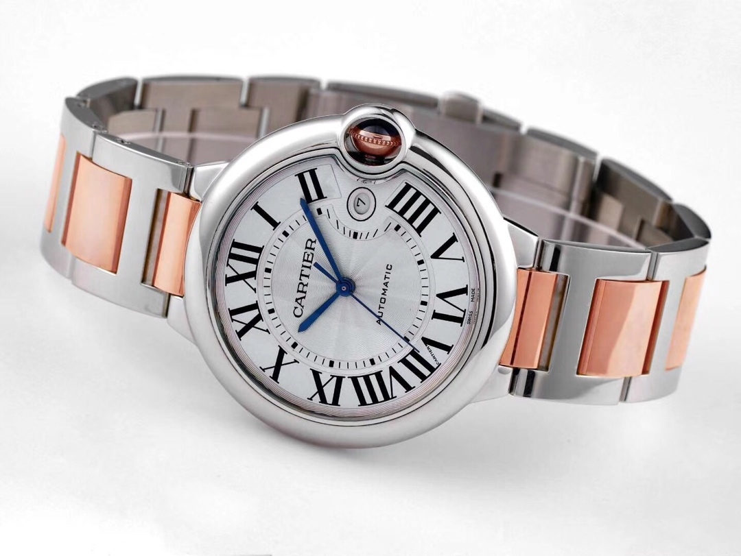 | Cartier Ballon Bleu 42mm White Dial Rose Gold Steel Bezel Strap W2BB0034 | |