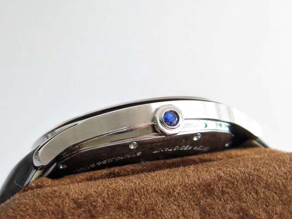 | Cartier Drive 40mm Black Dial Steel Bezel Black Leather Strap WSNM0009 | |
