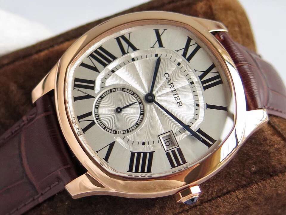 | Cartier Drive 40mm Silver Gray Dial Rose Gold Bezel Brown Leather Strap WGNM0003 | |