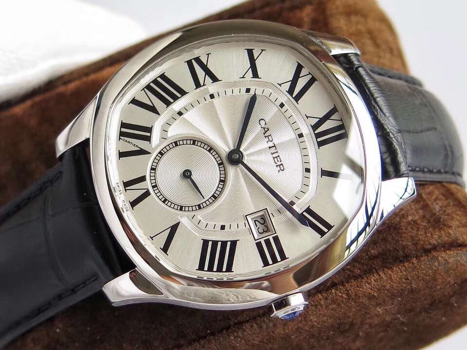 Cartier Drive 40mm Silver Gray Dial Steel Bezel Black Leather Strap WSNM0004
