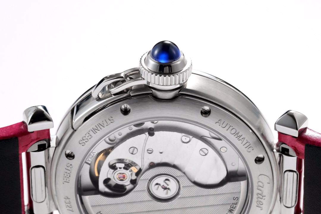 | Cartier Pasha 35mm White Dial Steel Bezel Rose Red Leather Strap WGPA0014 Ladies | |