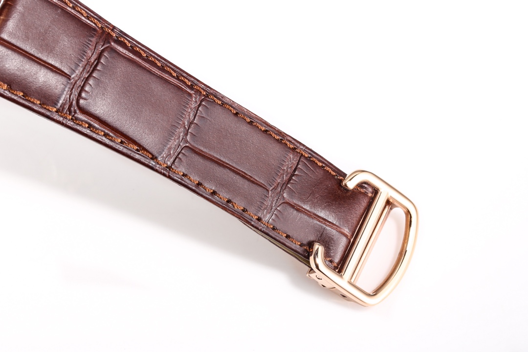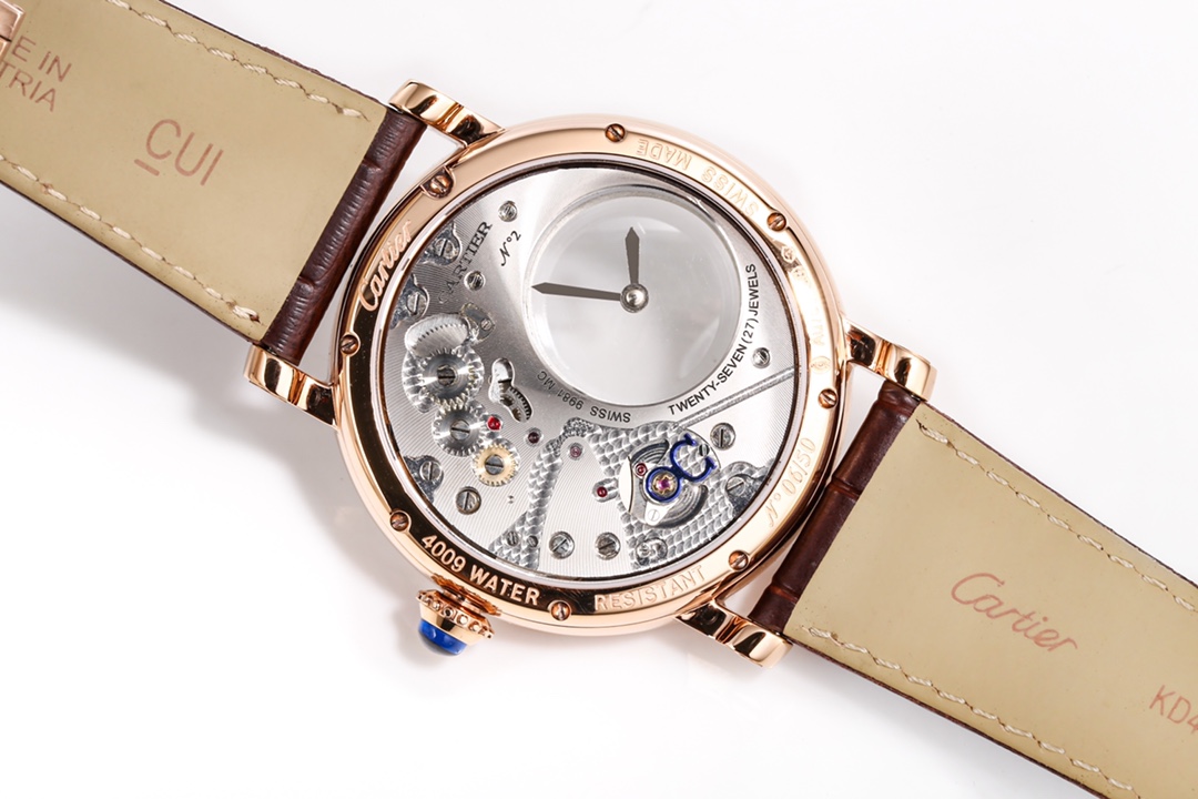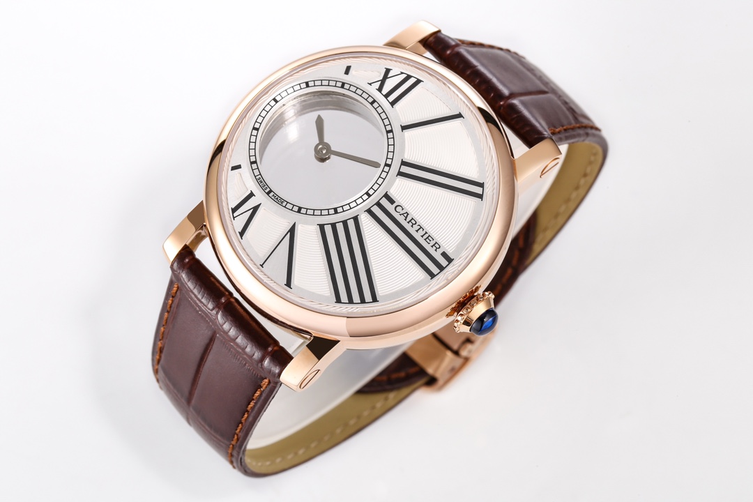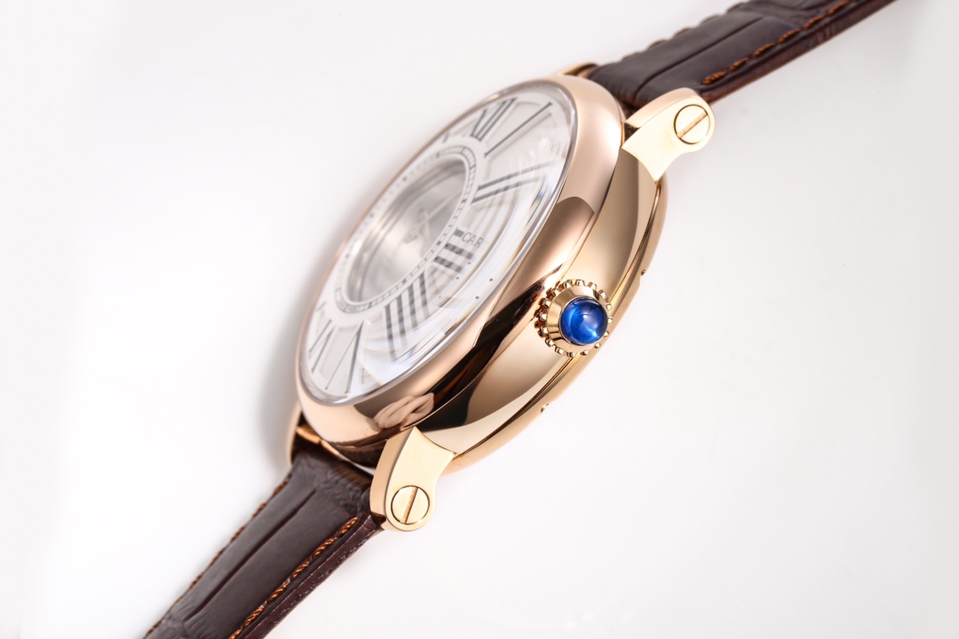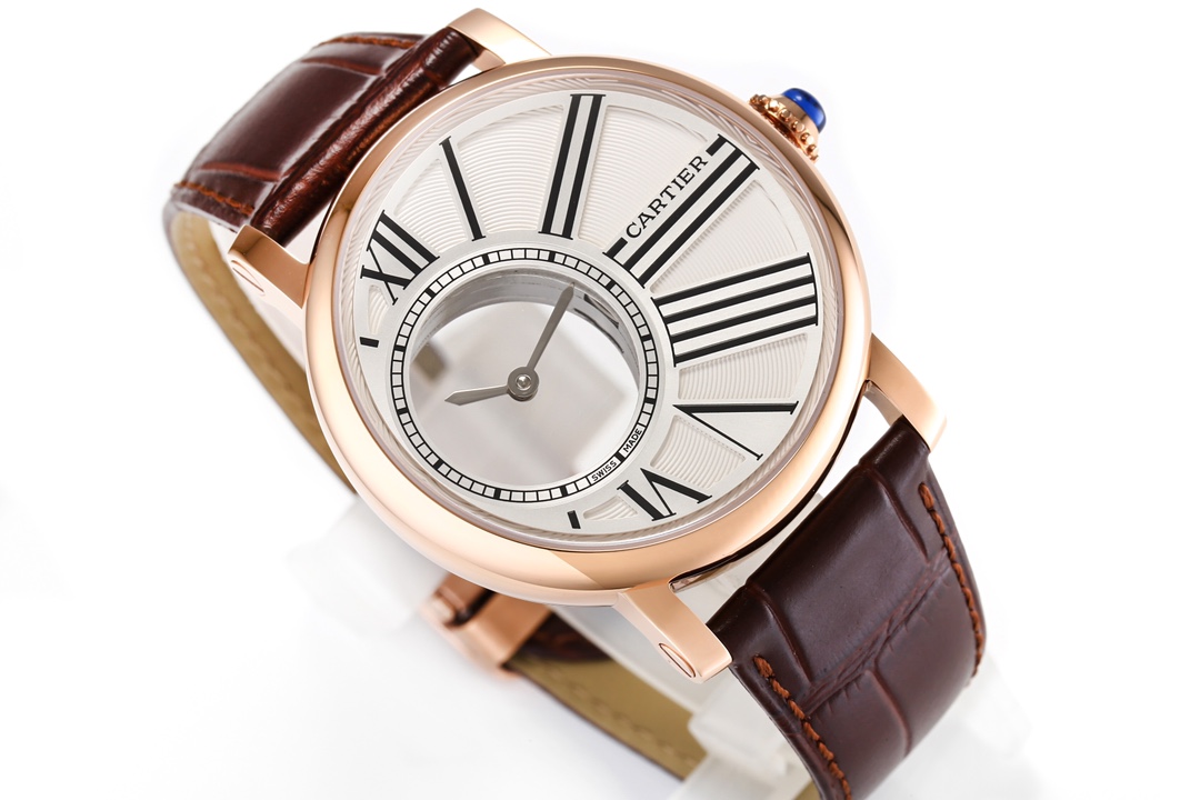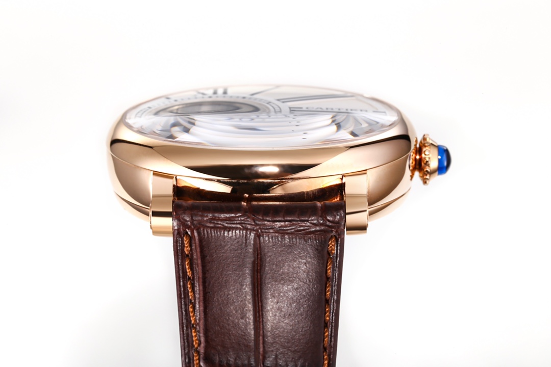 • Cartier Rotonde 42mm Hollow Dial Rose Gold Bezel Brown Leather Strap W1556223