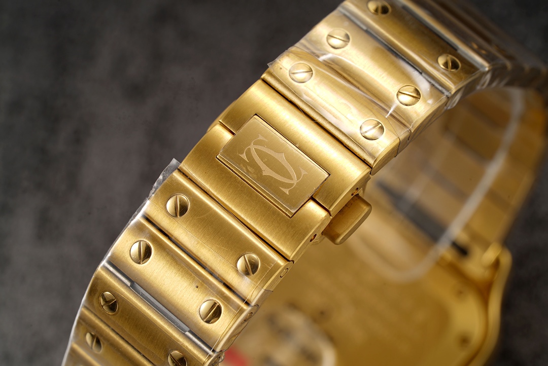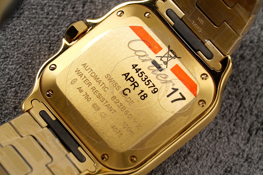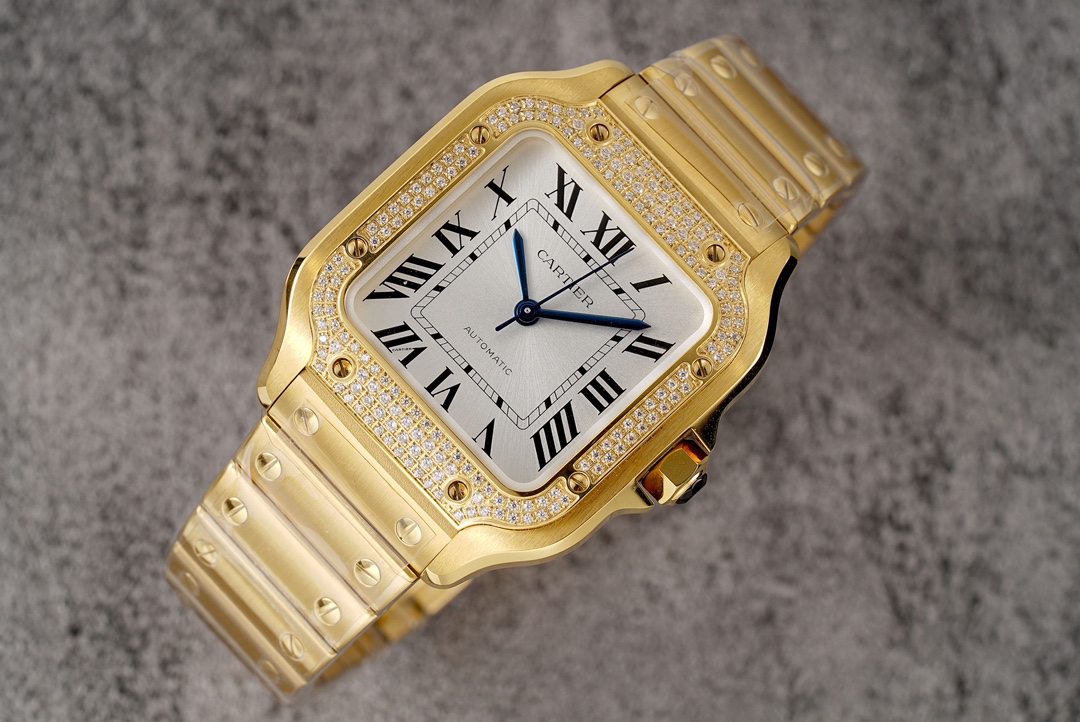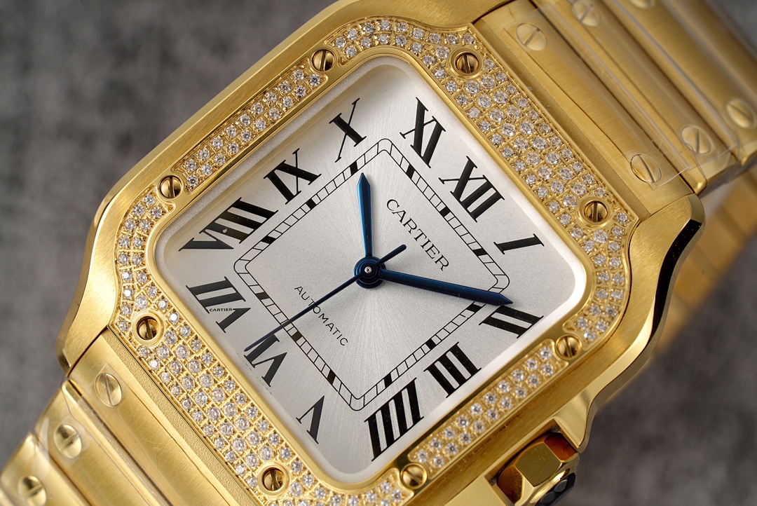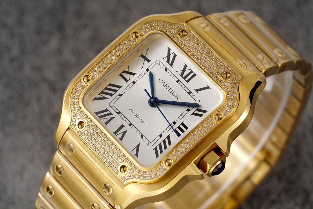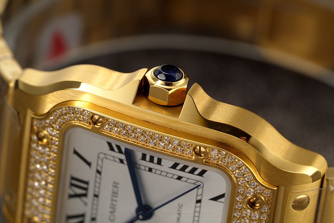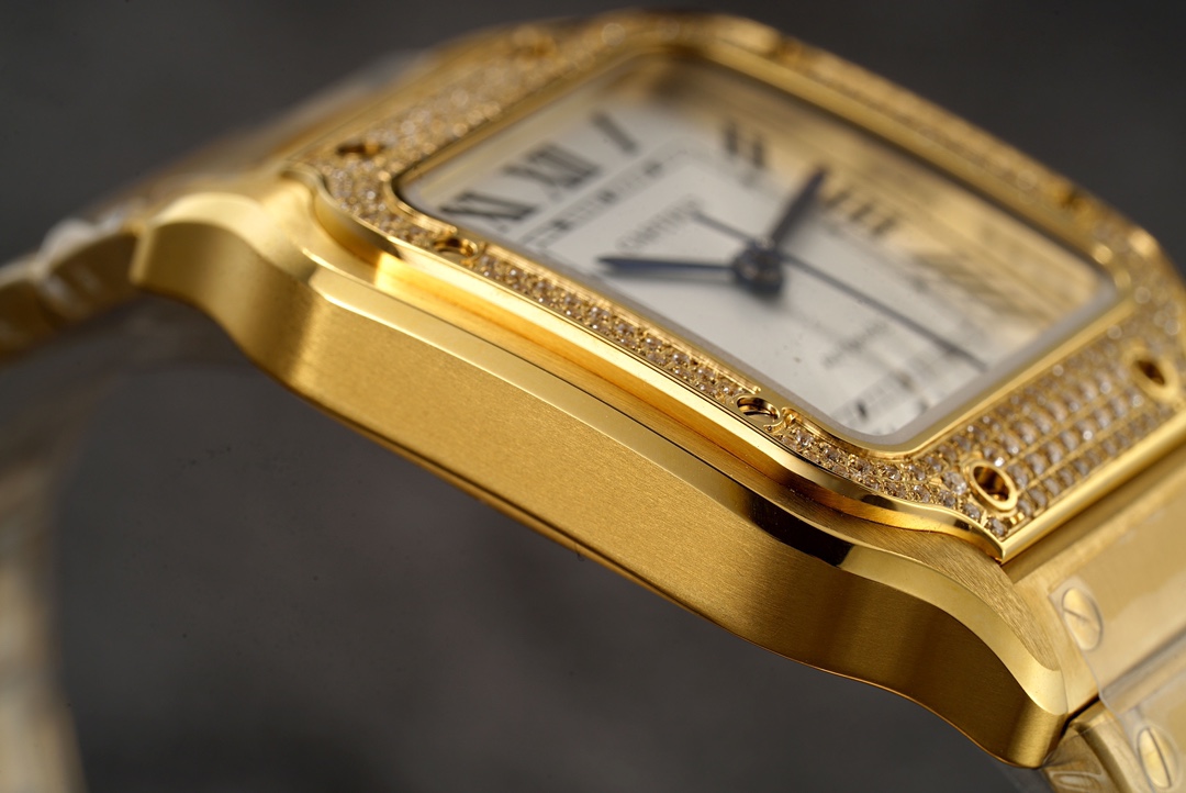Cartier Santos 35.1mm White Dial Diamond Yellow Gold Bezel Strap Roman Numerals W4SA000X Ladies