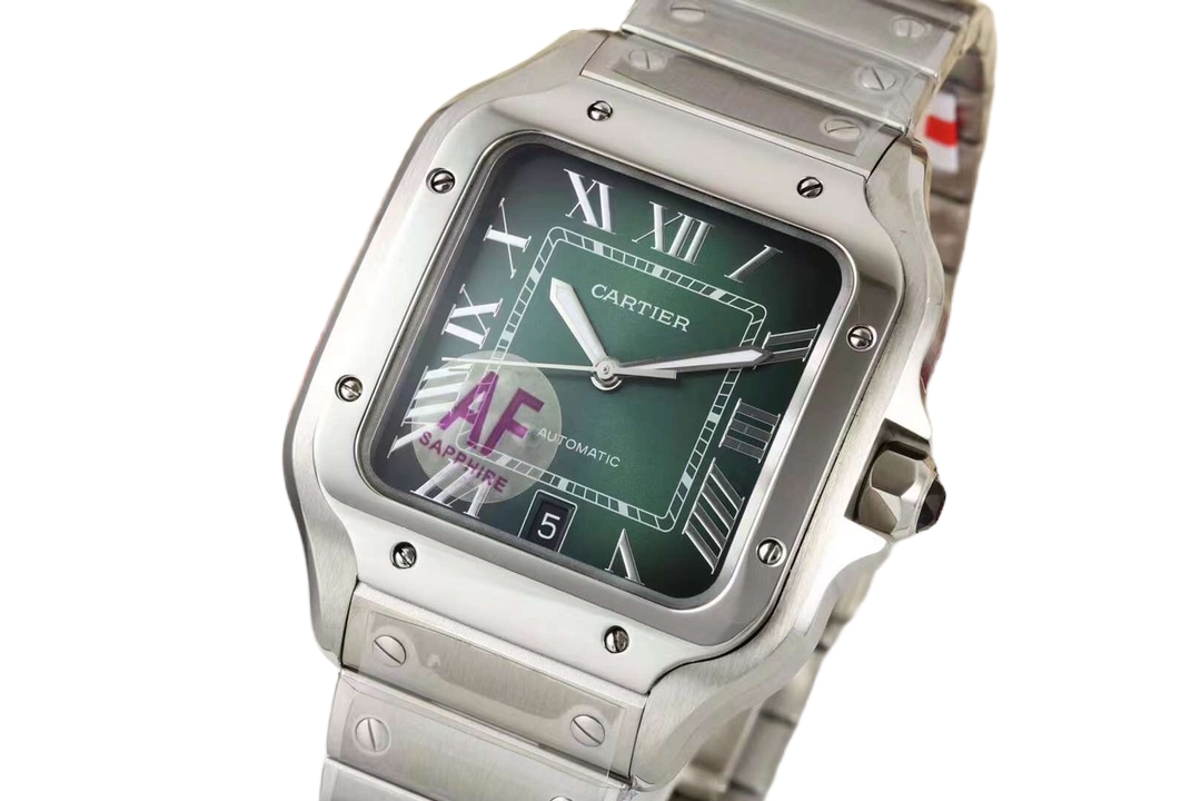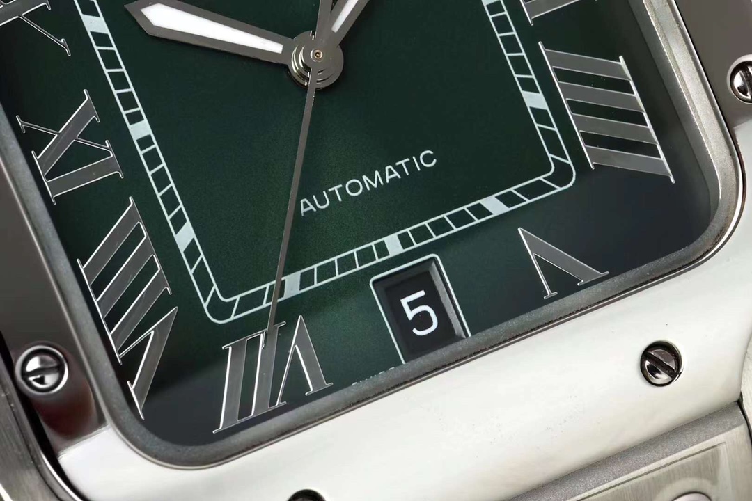Cartier Santos 39.8mm Green Black Dial Steel Bezel Steel Strap WSSA0062