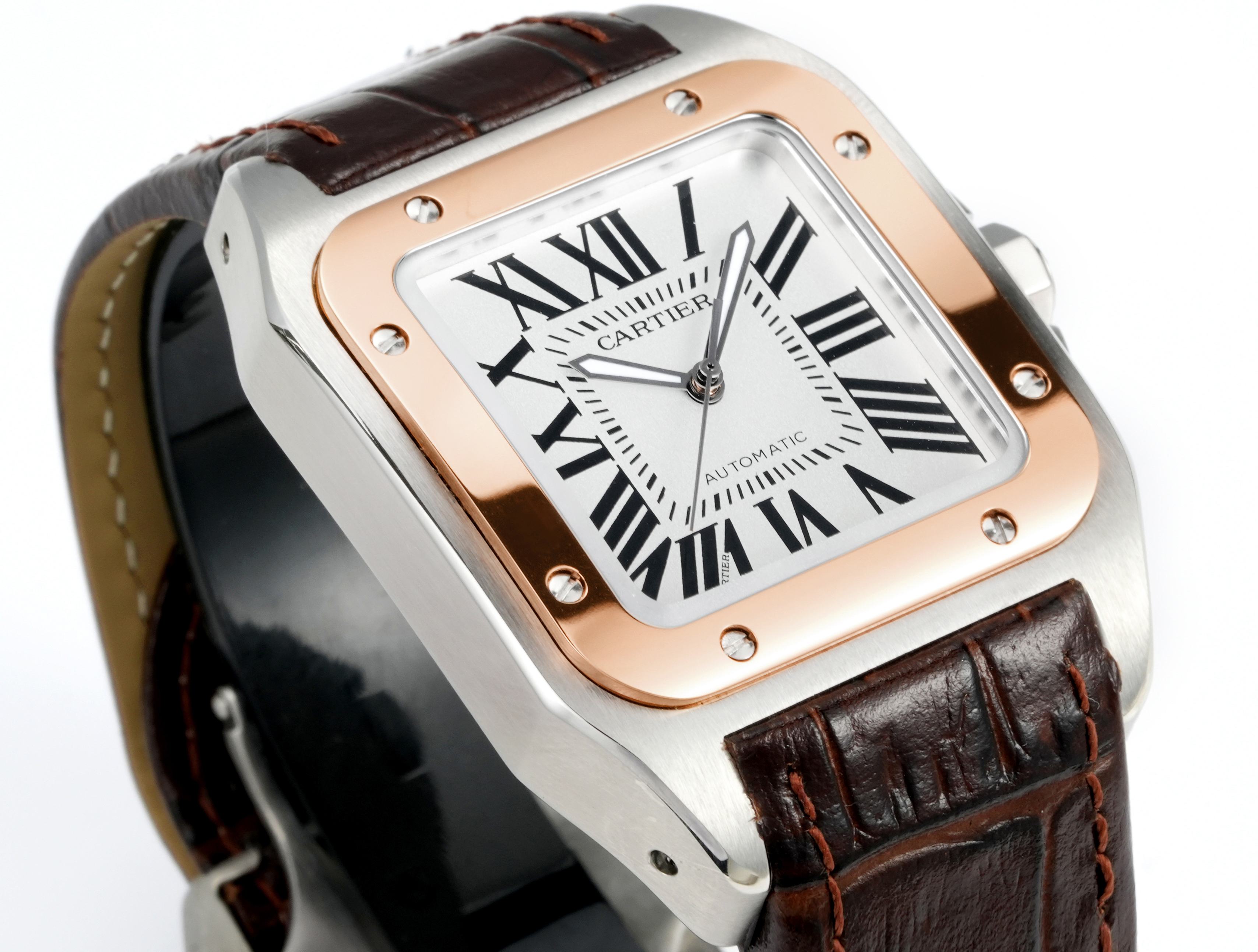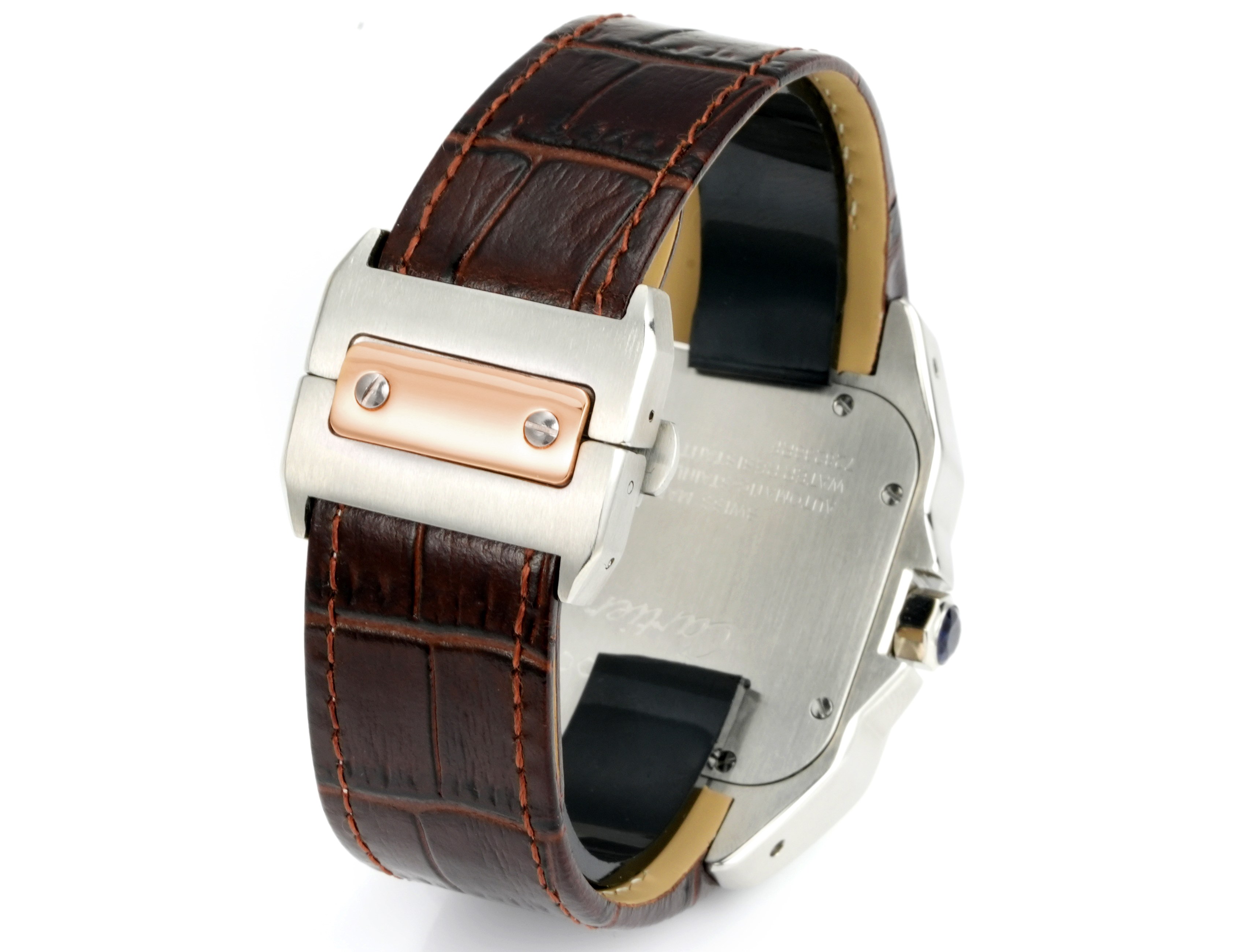 | Cartier Santos 41.3mm White Dial Rose Gold Steel Bezel Brown Leather Strap W23071Y1 | |