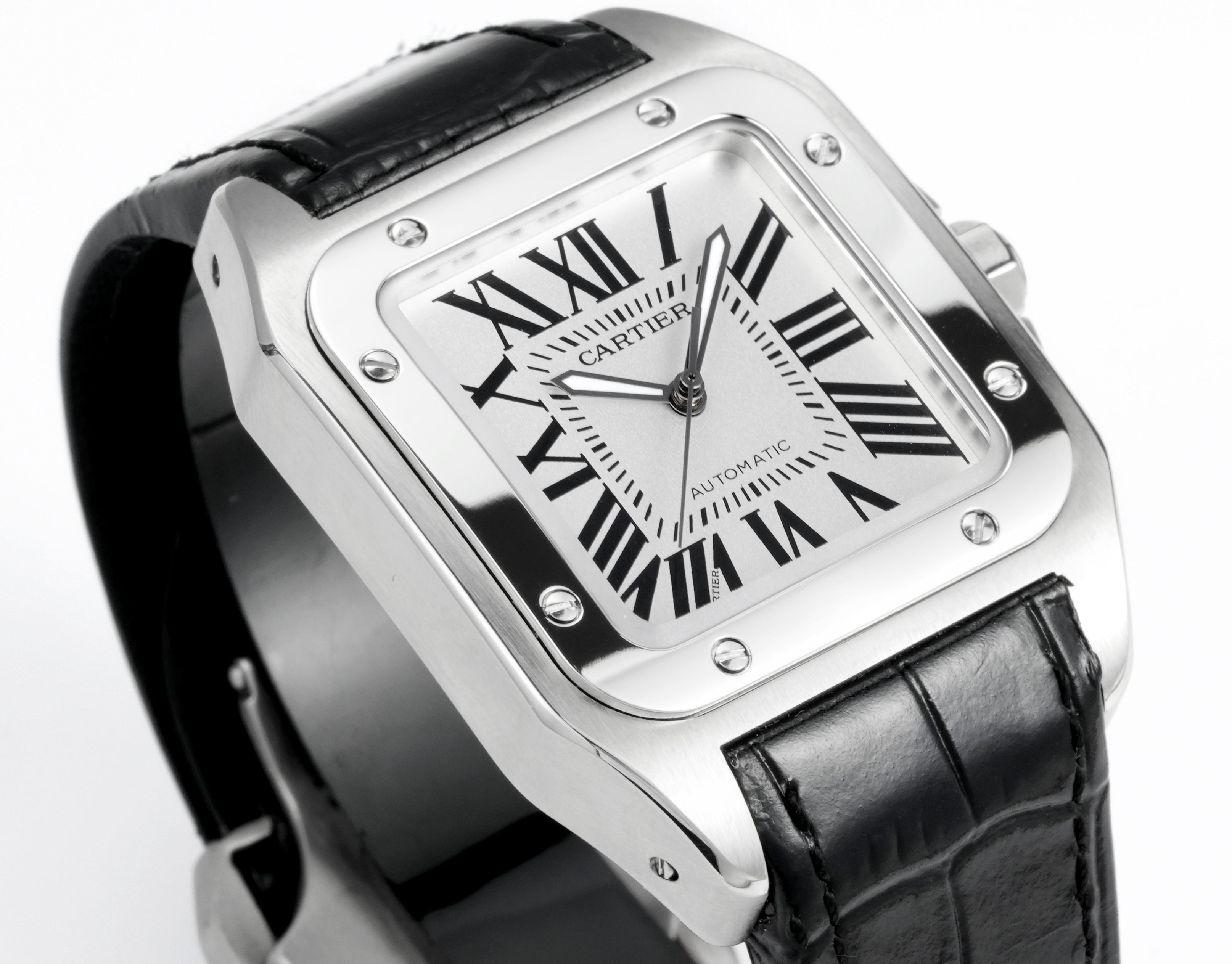 | Cartier Santos 41.3mm White Dial Steel Bezel Black Leather Strap W24071Y1 | |