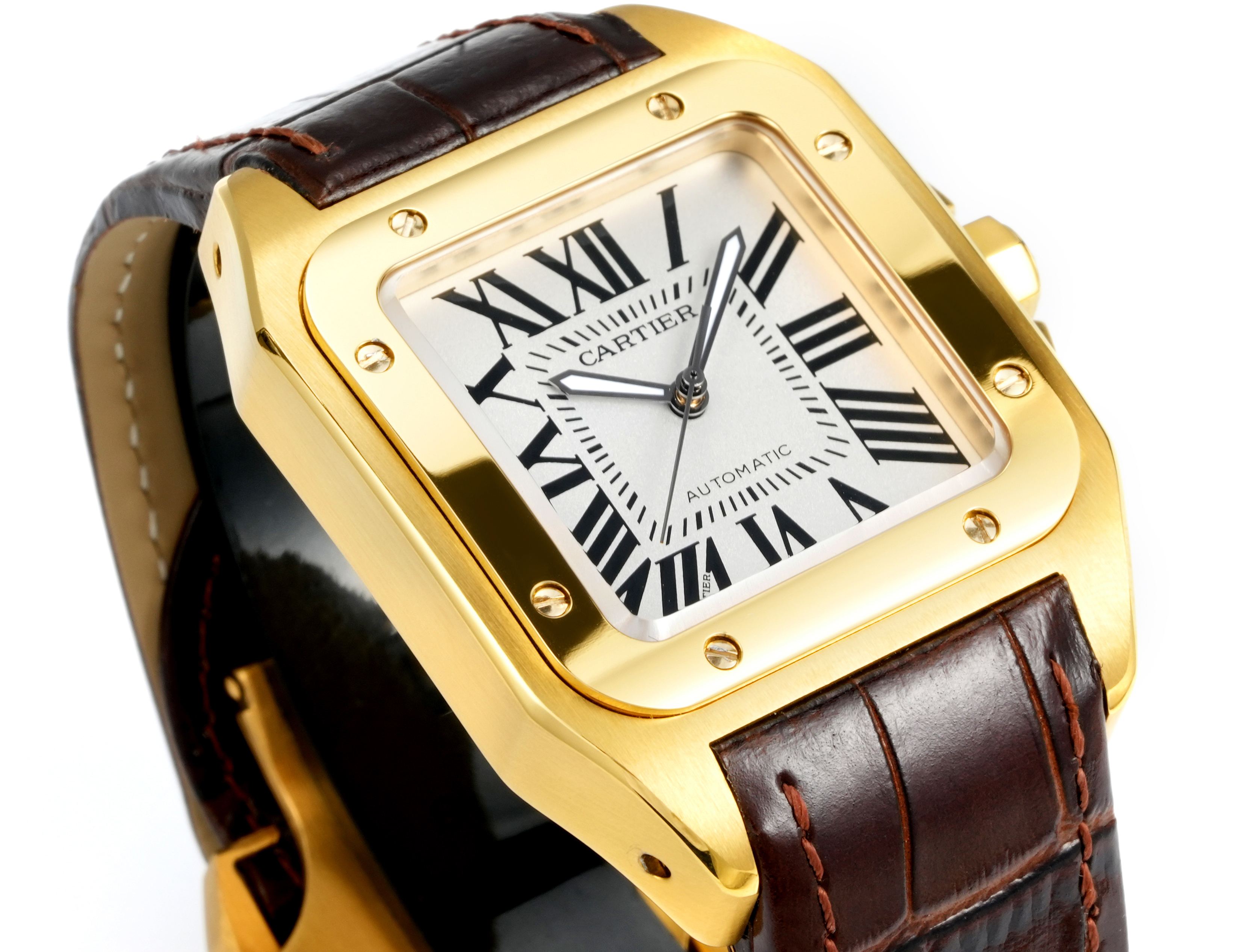 | Cartier Santos 41.3mm White Dial Yellow Gold Bezel Brown Leather Strap W20071Y1 | |
