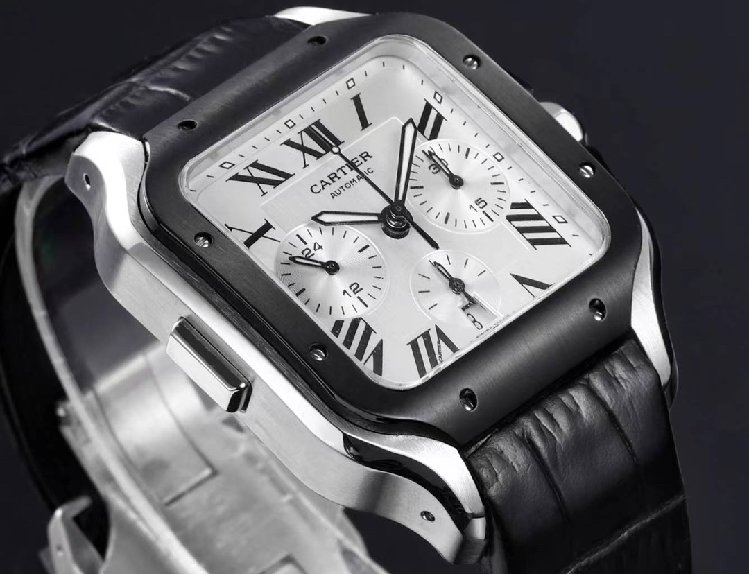 | Cartier Santos 43.3mm White Dial Steel Black Bezel Black Leather Strap WSSA0017 | |