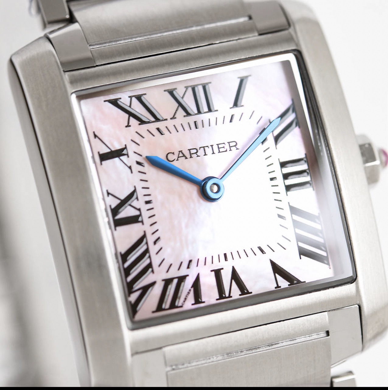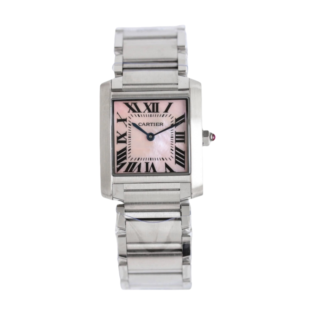 • Cartier Tank 30mm x 25mm Pink Fritillaria Dial Steel Bezel W51028Q3 Woman Ladies