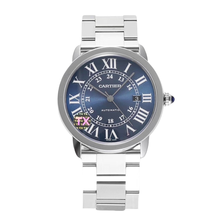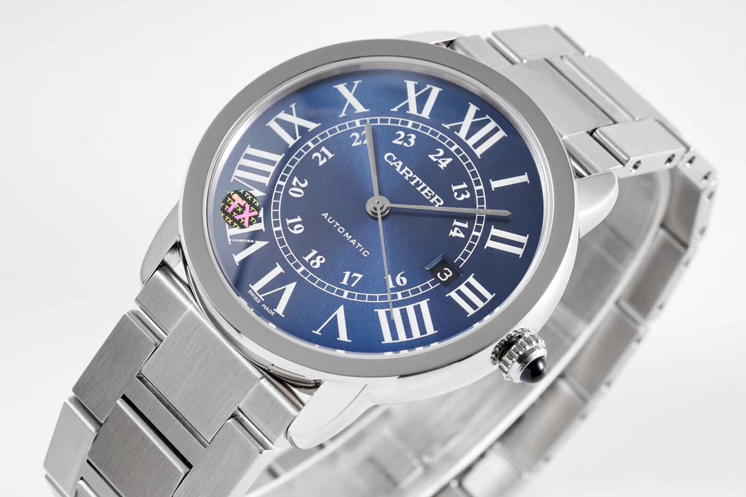 Cartier Ronde 42mm Blue Dial Steel Bezel Steel Strap WSRN0023