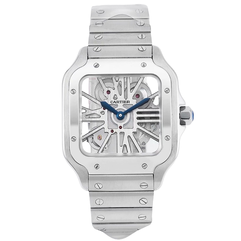 Cartier Santos 39.8mm Hollow Dial Steel Bezel Strap WHSA0015