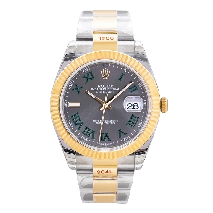 Rolex Datejust 36mm 41mm Green Roman Numerals Grey Dial Yellow Gold & Steel Bezel 126333-0019