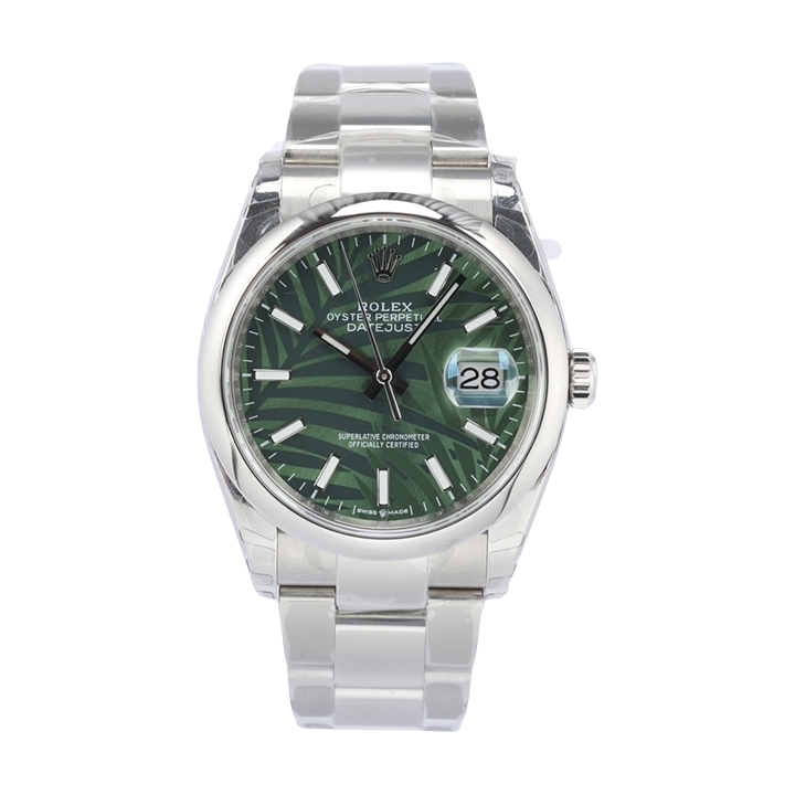 Rolex Datejust Oyster Green Palm Leaves Dial 36mm 41mm Steel Bezel 126200-0020