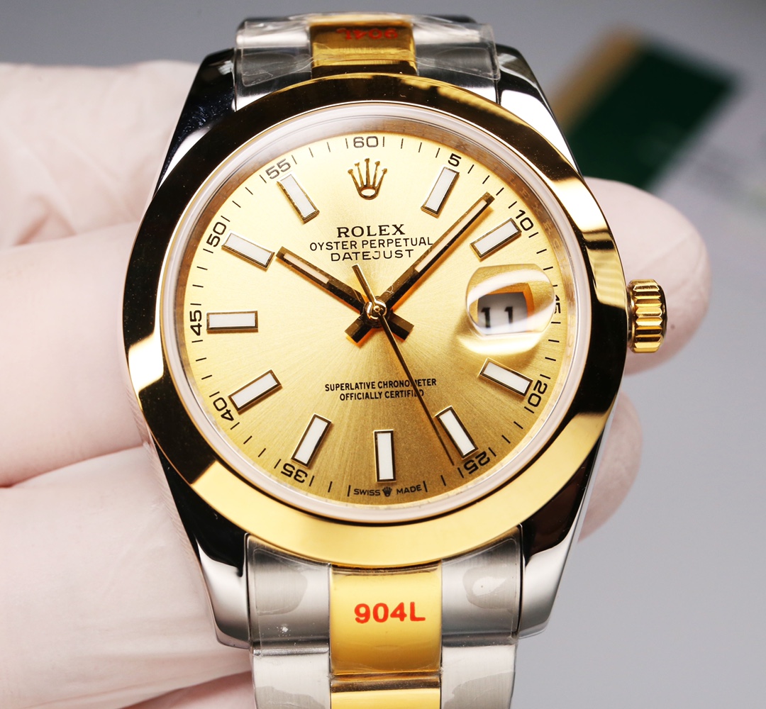 Rolex Datejust 36mm 41mm Water Ripples Gold Dial Yellow Gold Bezel 126303-0022