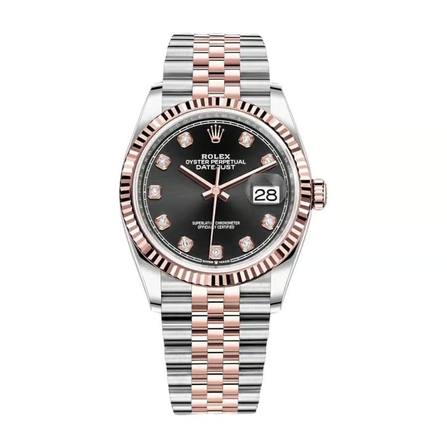 Rolex Datejust 36mm Black Dial Diamond Rose Gold & Steel 126231-0019