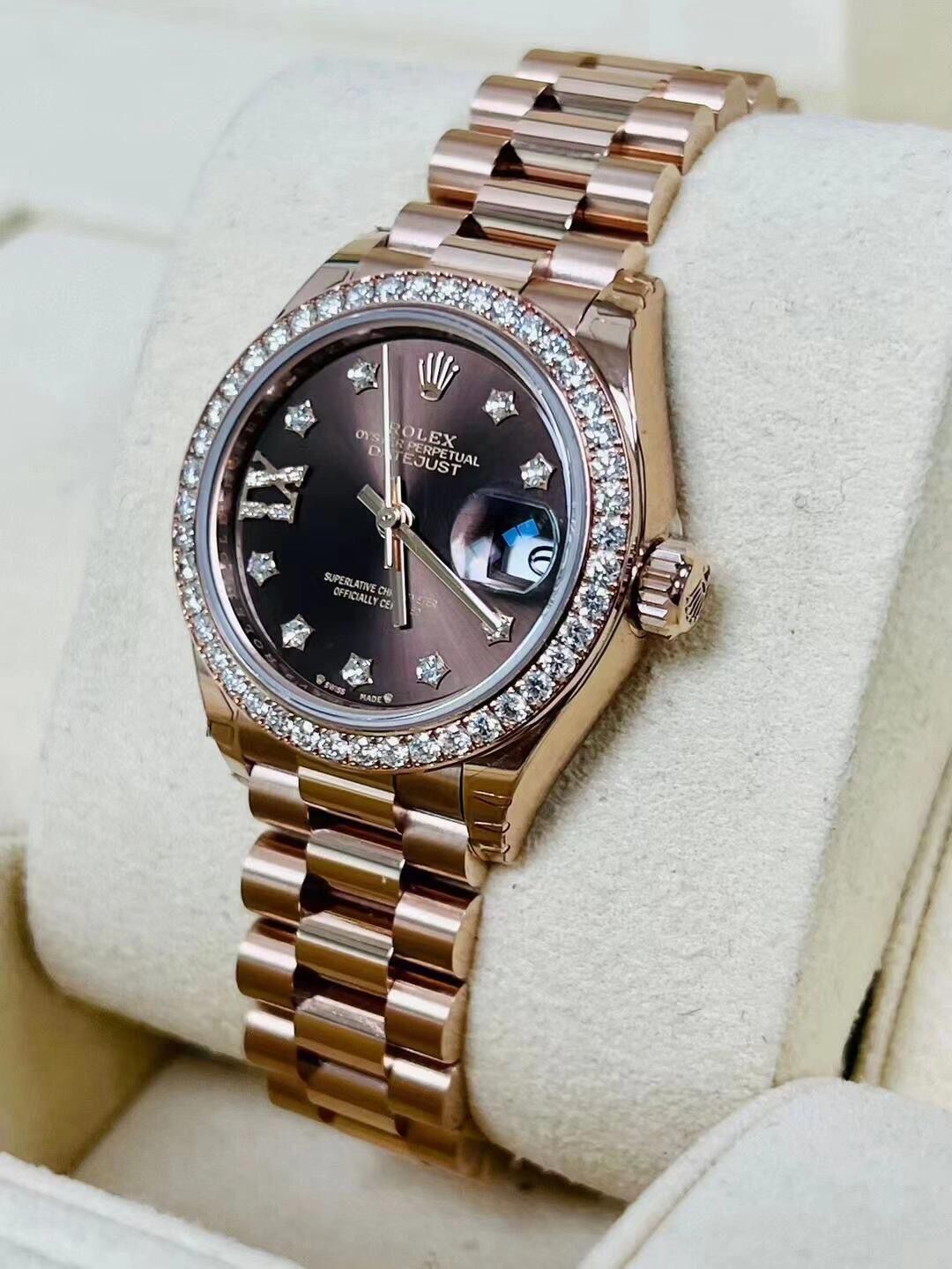 | Rolex Datejust 28mm Diamond Chocolate Dial Rose Gold Diamond Bezel 279139RBR-0002 | |